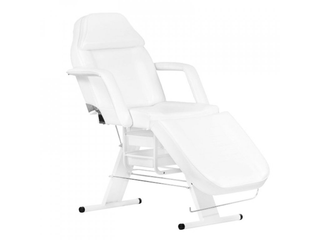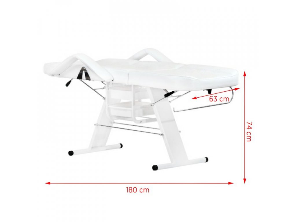 A gyönyörű kivitelezésű kozmetikai kezelőágy kozmetikai és masszázs szalonokban történő professzionális használatra szolgál. A szék támlái állíthatóak, használható fotelként vagy masszázs kezelésekhez vízszintes helyzetbe is állítható. A praktikus fejpárna levehető, így a masszázs kezelések alkalmával használható az arclyuk kivágás. Az oldalsó kartámlák ugyancsak könnyedén levehetőek.