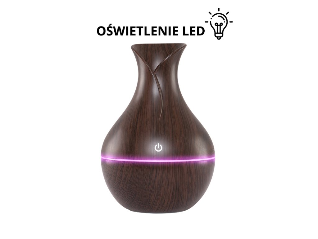 A SPA 17 DARK WOOD aroma diffúzor és párásító a nyugalom és frissesség stílusos forrása otthonában vagy munkahelyén. Ez a kompakt, sötét fa hatású diffúzor nemcsak hatékony, de esztétikus is – tökéletes választás kisebb helyiségekbe, például hálószobába, dolgozószobába vagy irodai íróasztalra.