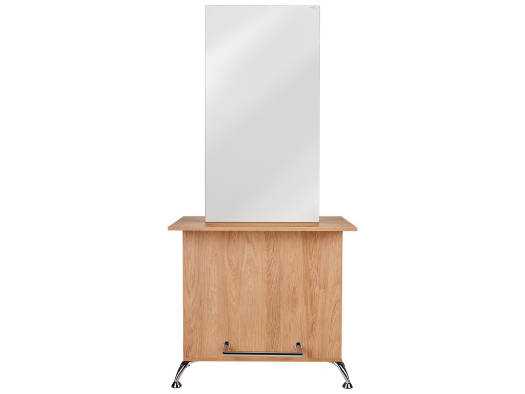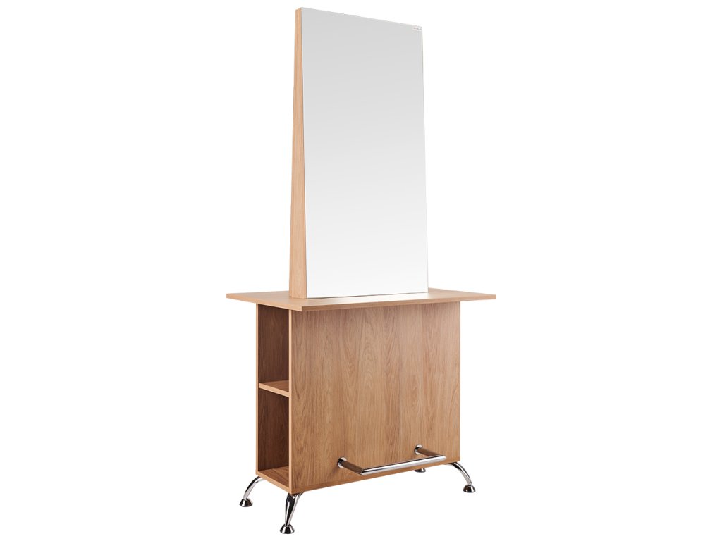 Mindkét oldalon tágas tükörfelület és kényelmes lábtartó található, ami nemcsak az ügyfelek kényelmét szolgálja, hanem megkönnyíti a fodrász munkáját is. Az asztallapon kényelmesen elhelyezhetők a fodrászati eszközök, hajápoló termékek vagy akár az ügyfél személyes tárgyai – például egy csésze kávé vagy mobiltelefon.