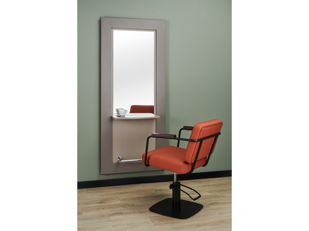 Az AYALA fodrász munkafal WEGA az egyik legkeresettebb modell a fodrászati berendezések között. Minimalista megjelenésével, funkcionális kialakításával és modern formavilágával tökéletes választás bármely fodrász szalonba. A beépített ezüstszínű krómozott lábtartó és a praktikus polc garantálják a kényelmes használatot mind az ügyfél, mind a fodrász számára.