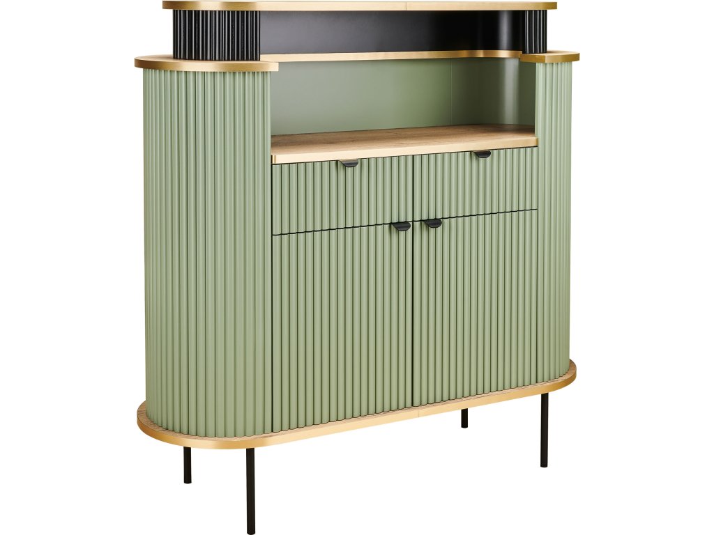 A pult maratott, lakkozott MDF szerkezetből készült, míg az alap és a lap bútorlapból van, így biztosítva a tartósságot és a modern megjelenést. Az érdekes, többféle szerkezeti kombináció a pultot egyedivé és figyelemfelkeltővé teszi.
