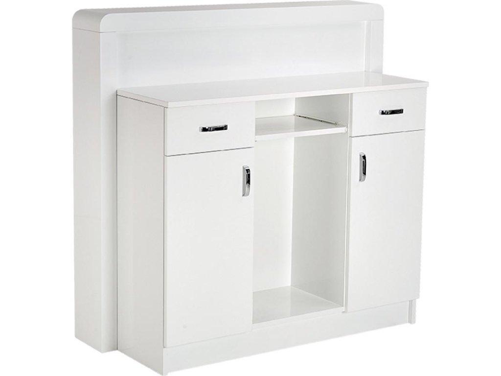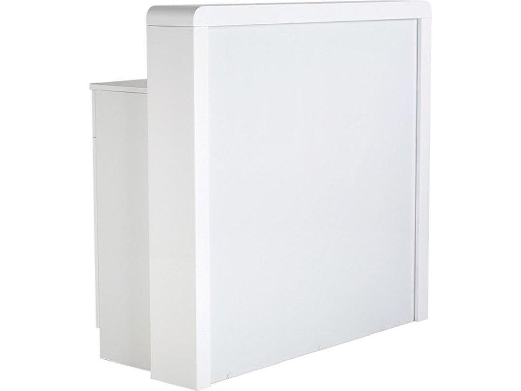 Az előlap világítással ellátott maratott lakkozott MDF, amely alapesetben fehér vagy fekete színben érhető el, de felár ellenében bármely RAL/NCS színben is legyártható, így könnyedén illeszthető bármilyen enteriőrbe. Továbbá lehetőség van az Ön logójának elhelyezésére is, amennyiben vektorgrafikát biztosít – így a recepciós pult egyedivé és márkaazonossá válik.