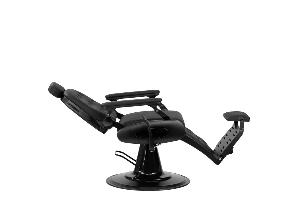 A stabil alapú konstrukció és a fekete árnyalatok kiemelik a kényelmet és a tartósságot. A deformációval szemben ellenálló habszivacs és a kellemes tapintású szintetikus bőr kárpit hosszú távú használatot biztosít. Az eszköz vízálló, tartós és könnyen tisztítható. A grafitszürke árnyalatú kárpit, az egyedi varrás és a díszes gombok különleges karaktert adnak a széknek. A motorkerékpáros dizájn elemek, amelyek a vintage stílust idézik, tökéletesen illeszkednek a borbélyüzlet hangulatába, és csodálatos atmoszférát teremtenek.