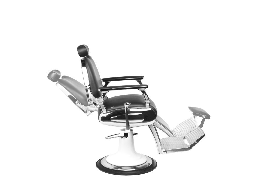 - Állítható háttámla és lábtartó: Az állítható háttámla és a beépített lábtartó maximális kényelmet biztosít borotválás és vágás közben.