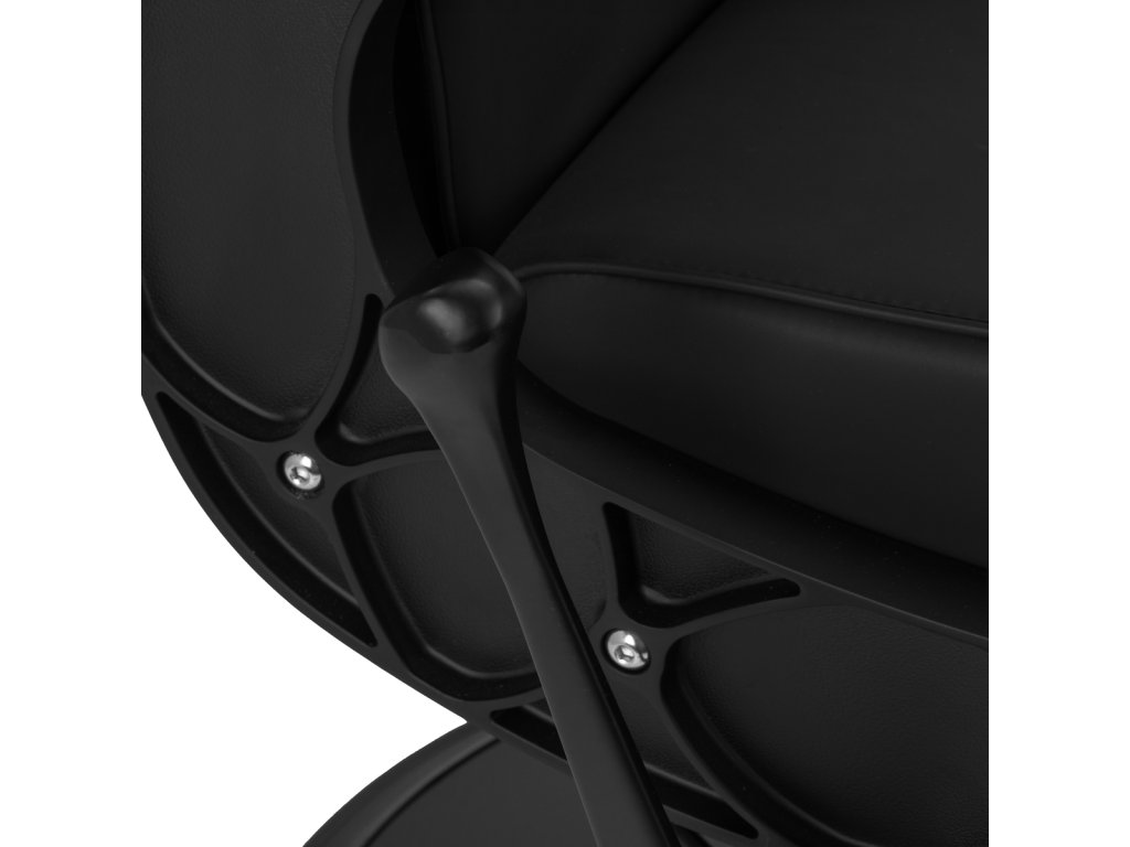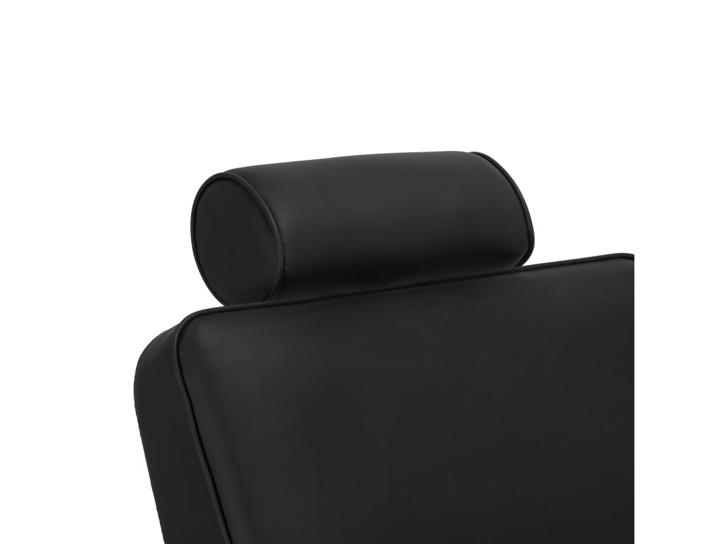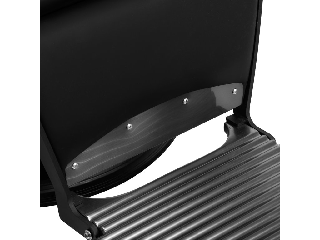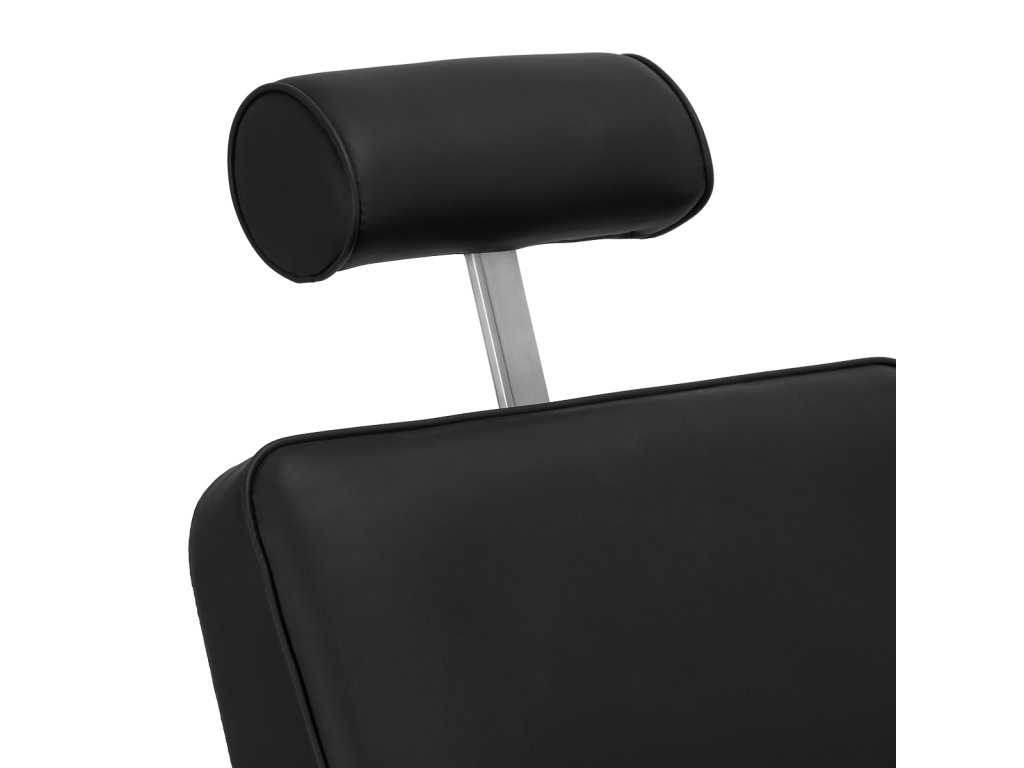 A szilárd alapszerkezet stabilitást és nagyfokú használati kényelmet biztosít. Az ülés töltete deformációálló habszivacsból, a kárpitozás pedig tapintható, matt felületű műbőrből készült, ami hosszú ideig biztosítja a bútor tartósságát és kényelmes használatát. A fekete kárpitozás egyedi jelleget kölcsönöz neki, minimalista stílusának köszönhetően pedig bármely fodrászat berendezésébe illeszkedik.