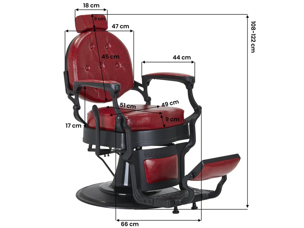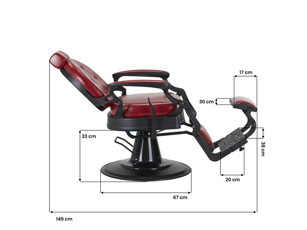 Ez a vintage stílusú barber szék nemcsak dekoratív, de rendkívül funkcionális is. A hidraulikus emelő segítségével az ülésmagasság 54–67 cm között állítható, még akkor is, ha a vendég a székben ül. A dönthető háttámla és az állítható lábtartó lehetővé teszi a kényelmes, félig fekvő pozíciót, ideális borotváláshoz vagy hajmosáshoz. A fejtámla akár 20 cm-rel meghosszabbítható, így minden vendég igényeihez könnyen igazítható.