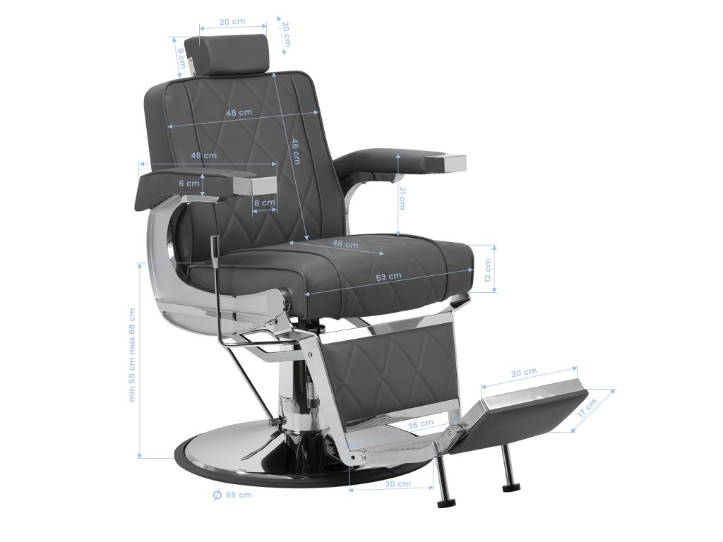 A strapabíró hidraulikus emelő segítségével a szék magassága szabadon állítható 55 és 68 cm között, akár terhelés alatt is, így gyorsan igazítható a vendég és a borbély magasságához. A dönthető háttámla és az állítható lábtartó révén a szék félig fekvő pozícióba is dönthető, míg a 20 cm-rel kihúzható fejtámla tökéletes fej megtámasztást nyújt.