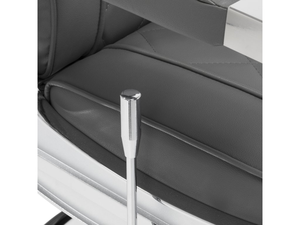 A kerek, stabil talapzat biztosítja a biztonságos használatot, míg a kellemes tapintású, matt szintetikus bőrkárpit és az autós stílusú varrás elegáns megjelenést kölcsönöz a széknek. A kárpitozás nemcsak stílusos, hanem vízálló, kopásálló és könnyen tisztítható is.