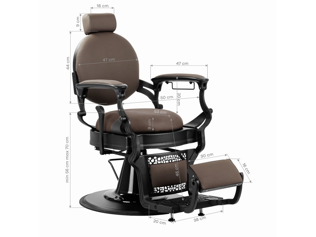 A Nicco barber szék ideális választás modern és vintage stílusú szalonokba egyaránt. A barna szintetikus bőrrel borított szék nemcsak elegáns megjelenést biztosít, de kiemelkedő kényelmet is nyújt minden kezelés során. Az ergonomikus forma, a kényelmes, habszivacsos ülés és a háttámla optimális tartást adnak, különösen hosszabb kezelések alatt.