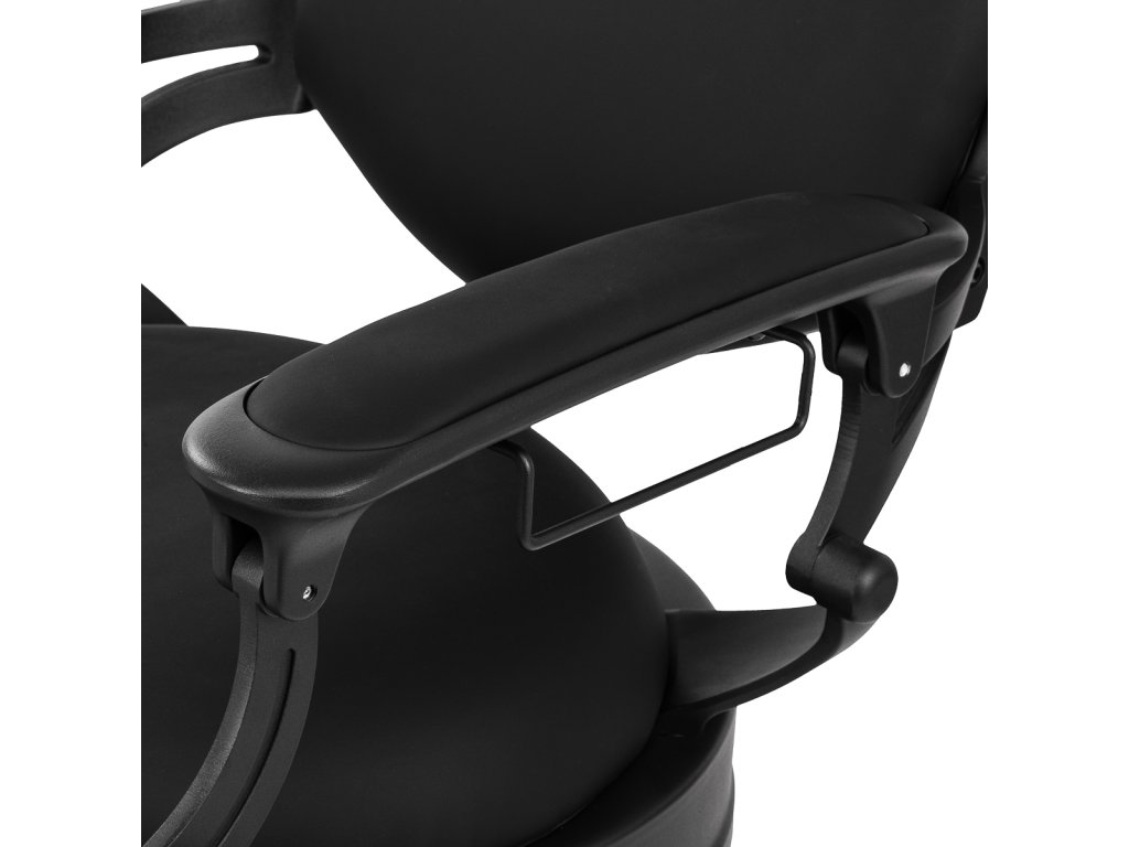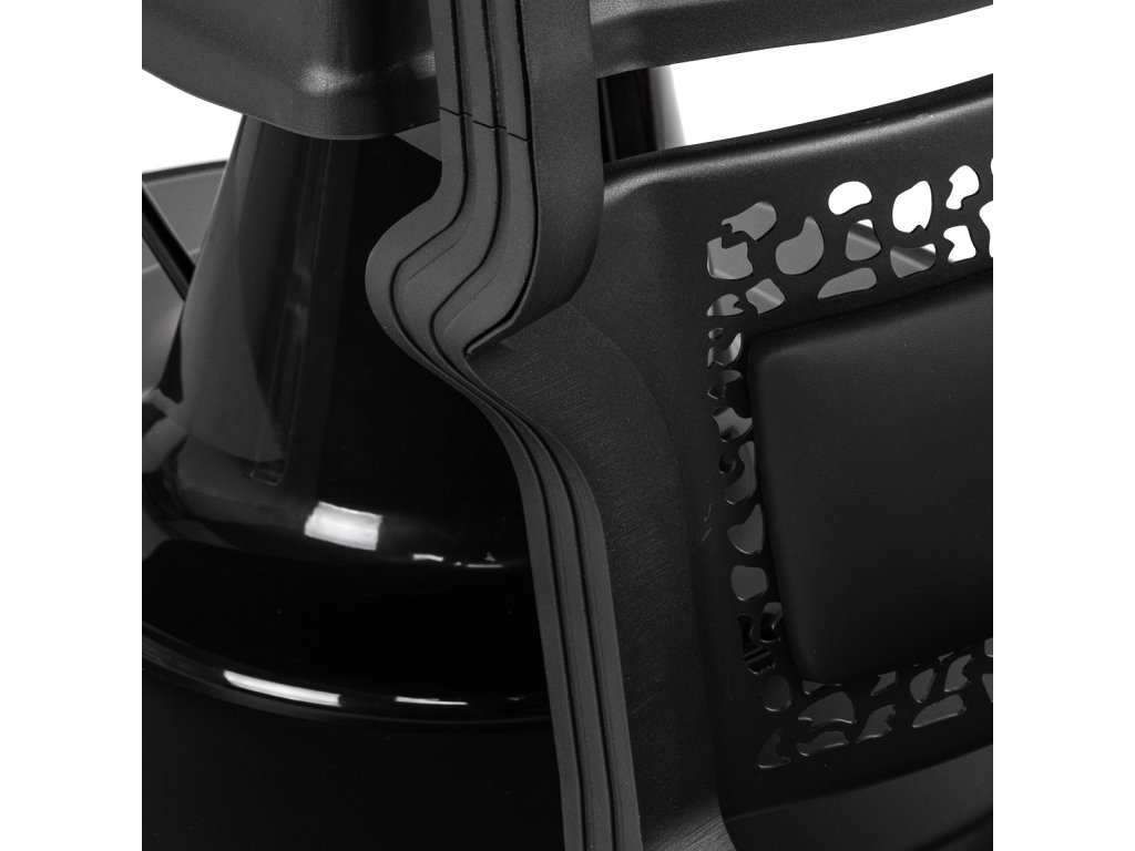 A szék tartós, vízálló anyagból készült, így könnyen tisztán tartható. A letisztult fekete árnyalat és a dizájnos lábtámasz egyedi karaktert ad a berendezésnek, amely stílusosan emeli szalonja színvonalát.