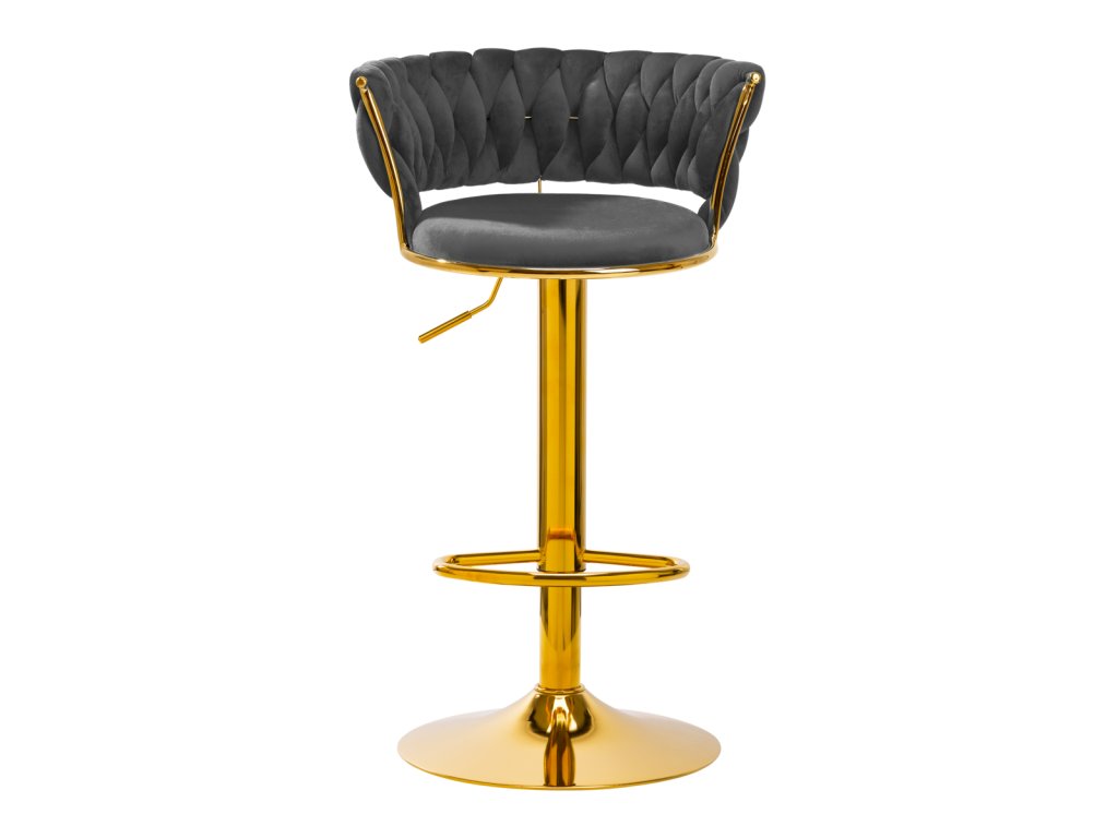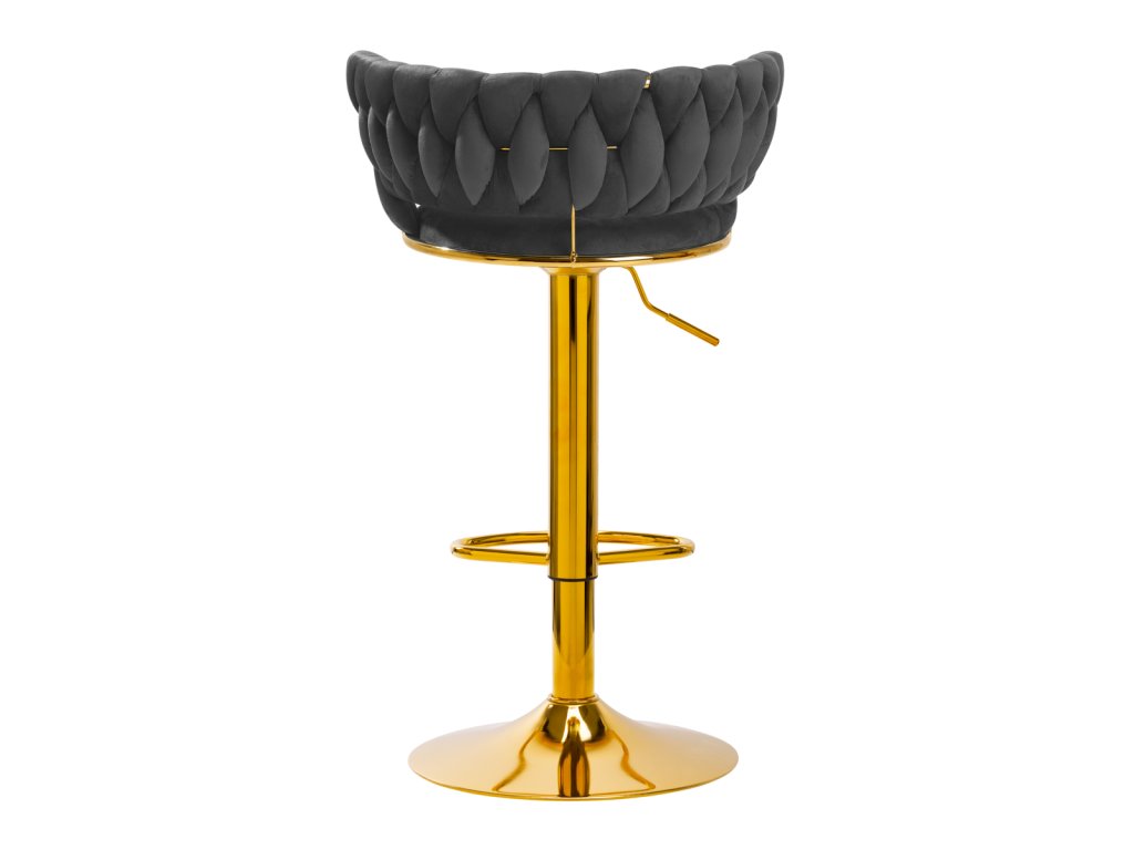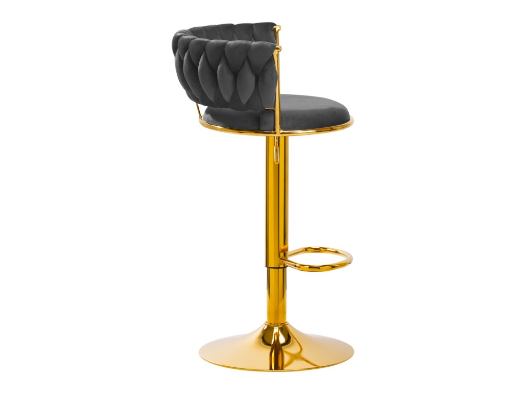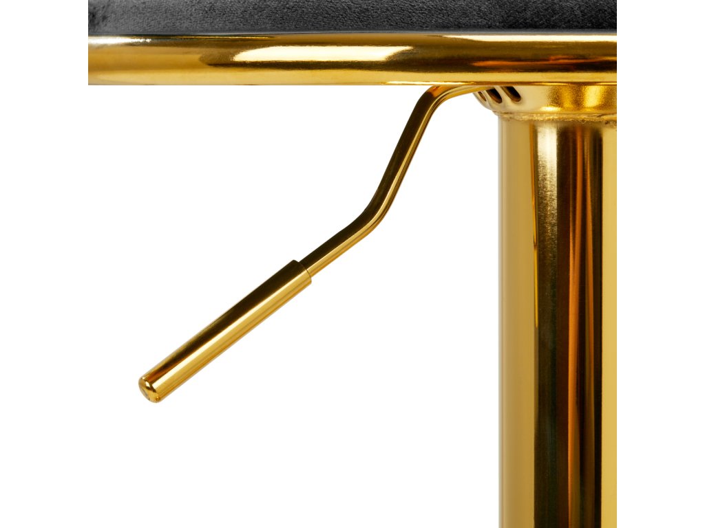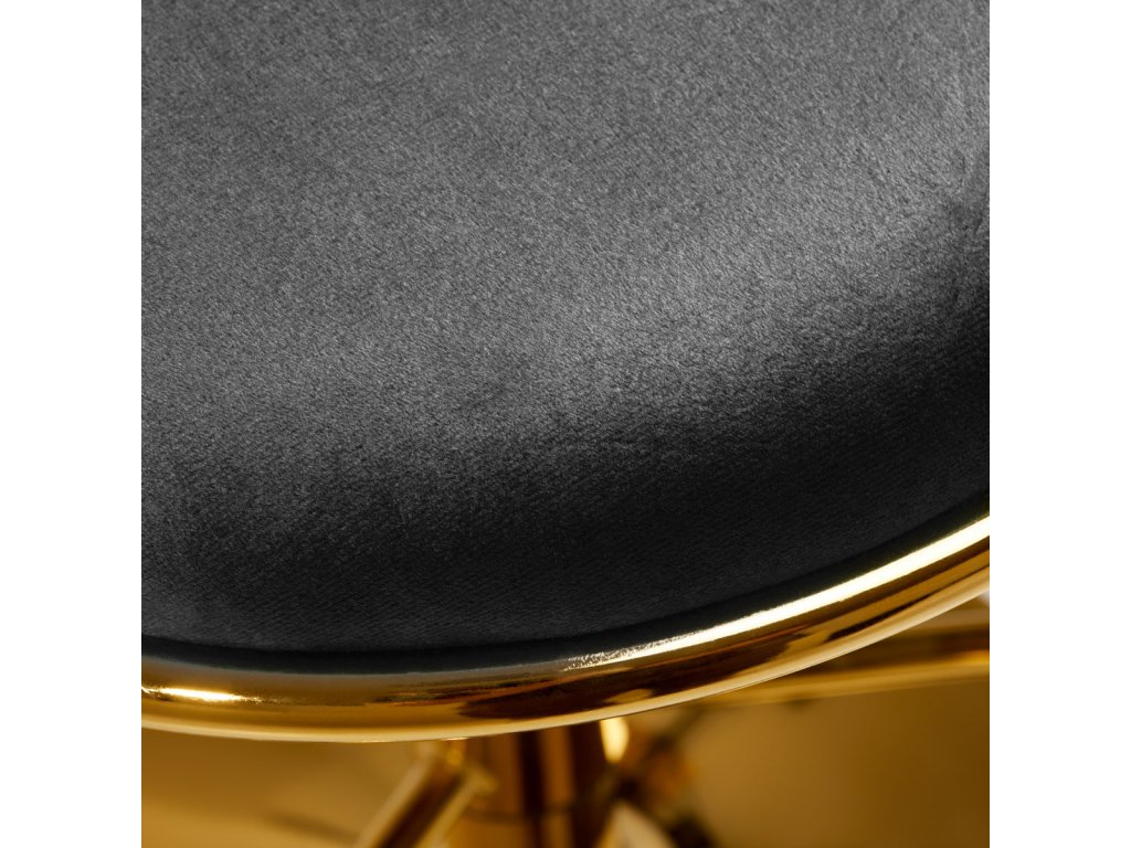 A szék szürke bársony kárpitozása időtlen eleganciát sugároz, míg az aranyszínű váz tovább fokozza a luxus hatást. A háttámla esztétikus varrásai és az anyag textúrája vizuálisan is figyelemfelkeltő. Ez a bárszék tökéletes választás, ha prémium megjelenésű, mégis kényelmes bútort keresel.