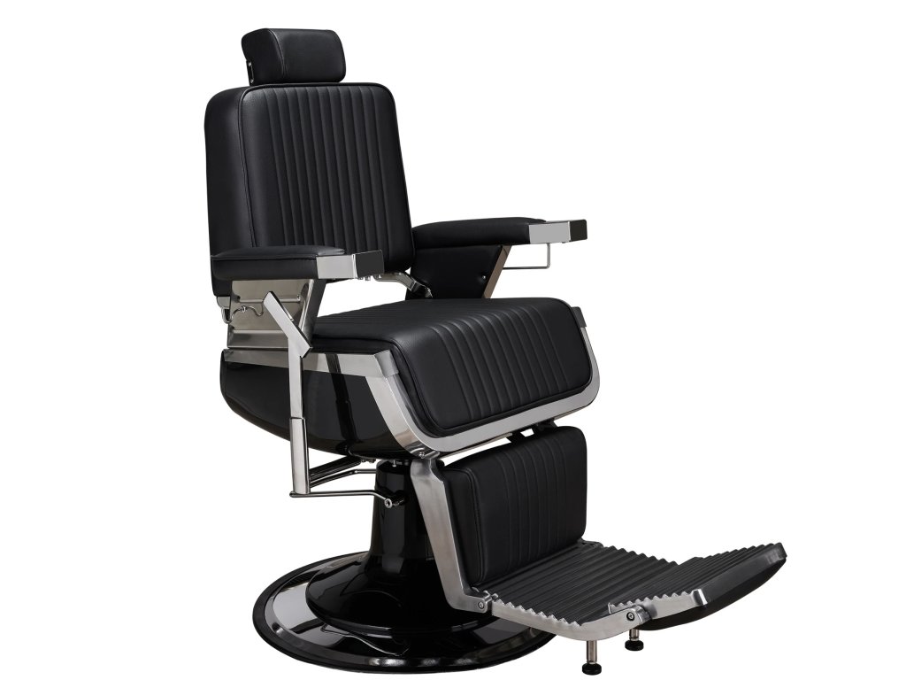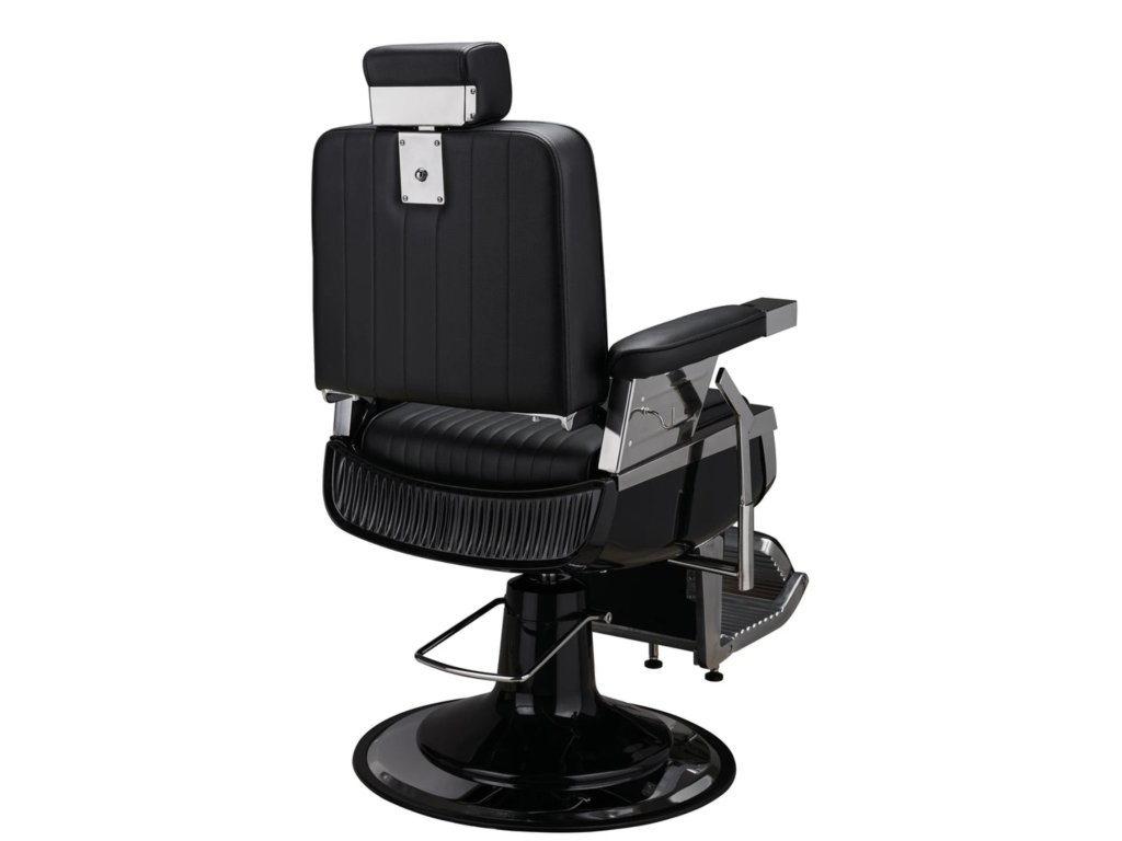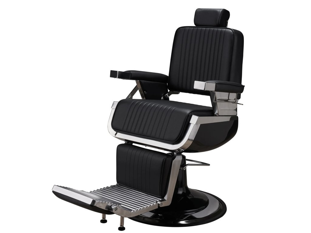 A széles, párnázott ülőfelület, az állítható fejtámla és a dönthető háttámla akár félig fekvő pozícióig biztosítják a vendég maximális kényelmét, valamint a borbély számára az ergonomikus hozzáférést.