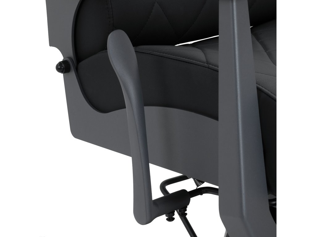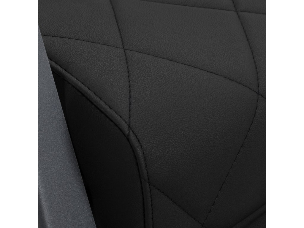A fekete szintetikus bőr kárpitozás tartós, nedvességálló és könnyen tisztítható, míg a belső szivacstöltet ellenáll a deformációnak, így hosszú élettartamot biztosít. Az ergonomikus ülésforma, a grafit színű, párnázott kartámaszok és a 360°-ban forgatható mechanizmus még kényelmesebbé teszik a használatot.