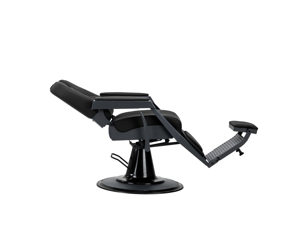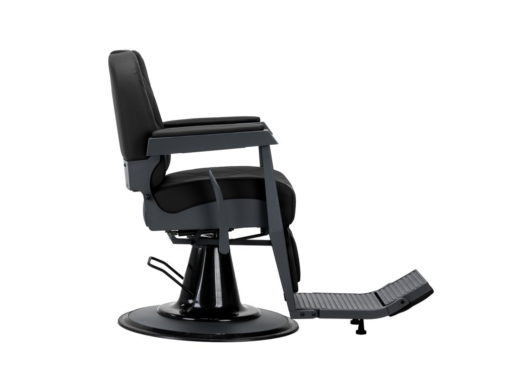 A fekete kárpitozás és grafit elemek kombinációja modern, professzionális megjelenést biztosít, amely bármely barber szalon enteriőrjébe tökéletesen illeszkedik.