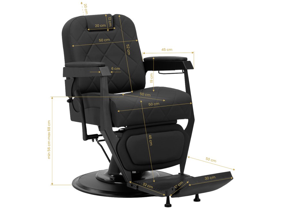 A hidraulikus emelő lehetővé teszi a magasság fokozatmentes állítását 56–68 cm között, akár a kezelés közben is. Ez biztosítja a borbély számára az ideális munkapozíciót, miközben a vendég teljes kényelmet élvez.
