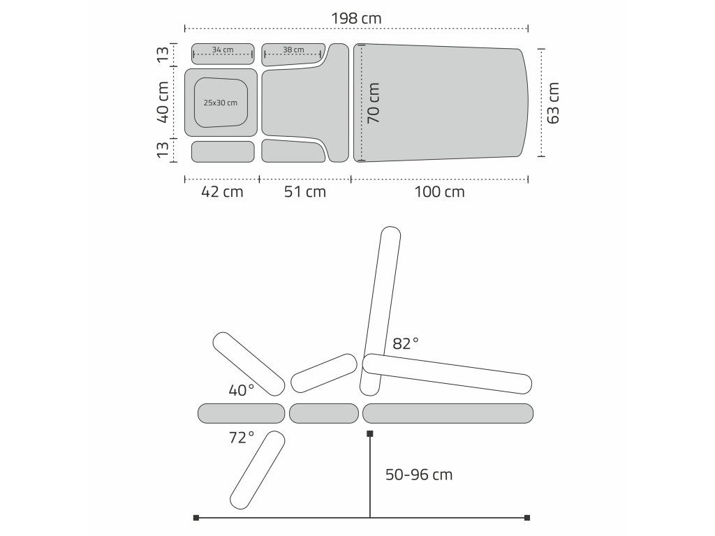 Háttámla rész: 70 × 70 cm
