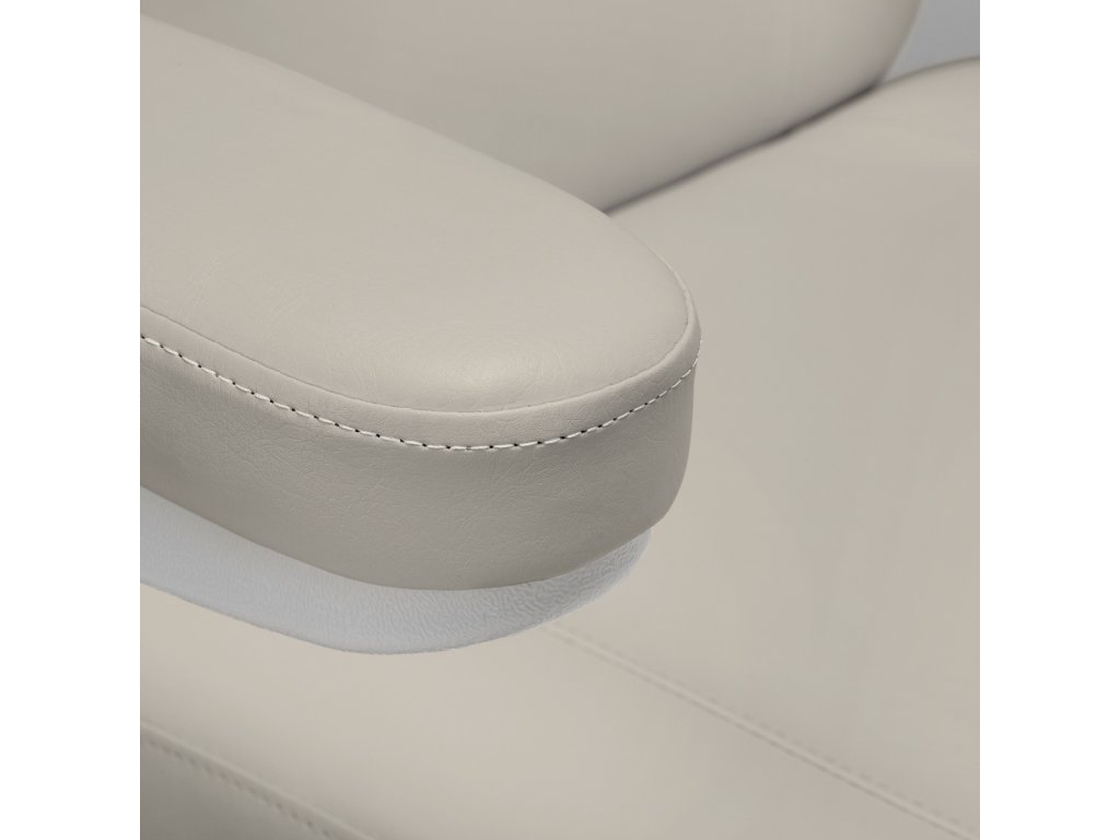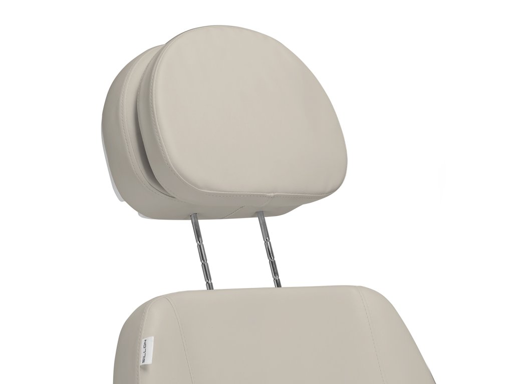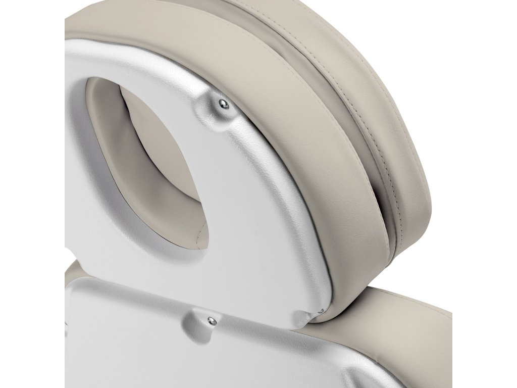 A Latte árnyalatú, szintetikus bőr kárpit elegáns, időtálló megjelenést kölcsönöz, miközben víz-, szennyeződés- és fertőtlenítőszer-álló, valamint rendkívül könnyen tisztán tartható. A fehér, stabil alap biztosítja a maximális stabilitást és biztonságot a kezelések teljes ideje alatt.
