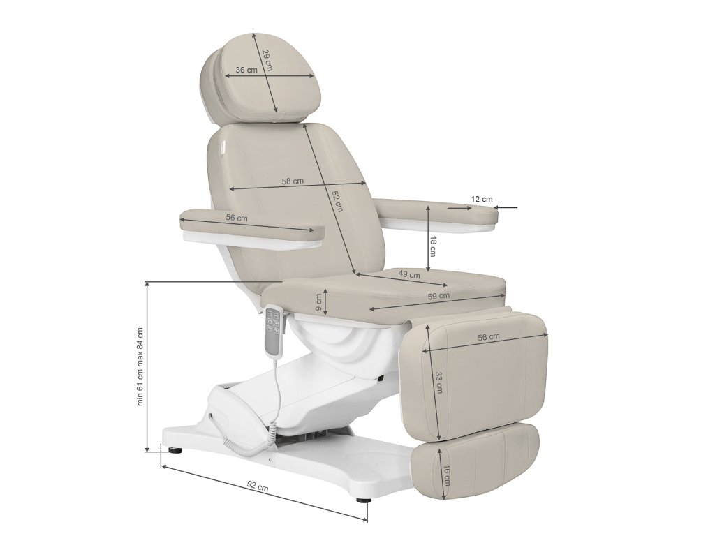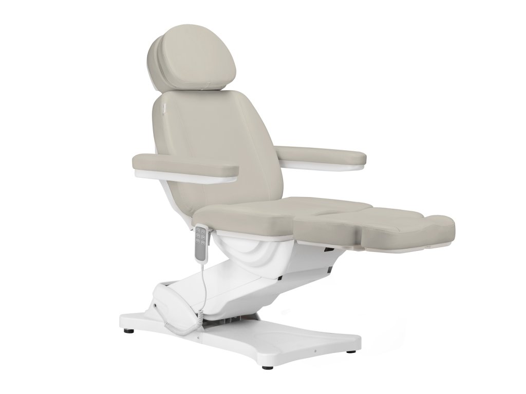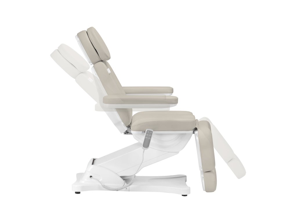A három csendes és megbízható motor lehetővé teszi a magasság, a háttámla és a lábtartó pozíciójának fokozatmentes beállítását. A pozíciók egyszerűen, távirányítóval szabályozhatók, így a kezelő gyorsan és pontosan beállíthatja a megfelelő helyzetet a vendég és a kezelés igényei szerint.