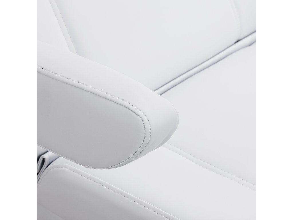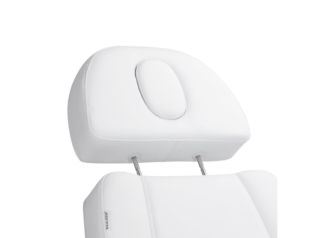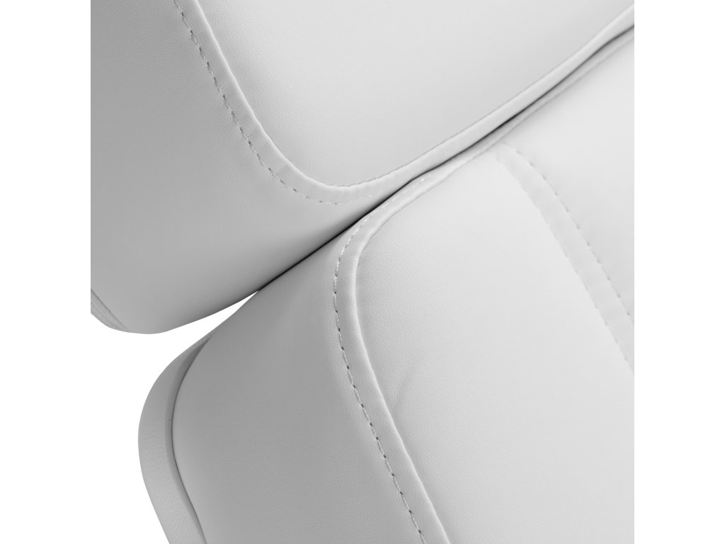 Az ergonomikusan formázott, kiváló minőségű szintetikus bőr kárpitozás puha, nedvességálló és könnyen tisztítható. Az elegáns fehér felület professzionális, letisztult megjelenést kölcsönöz, amely bármely modern szépségszalonba tökéletesen illik.