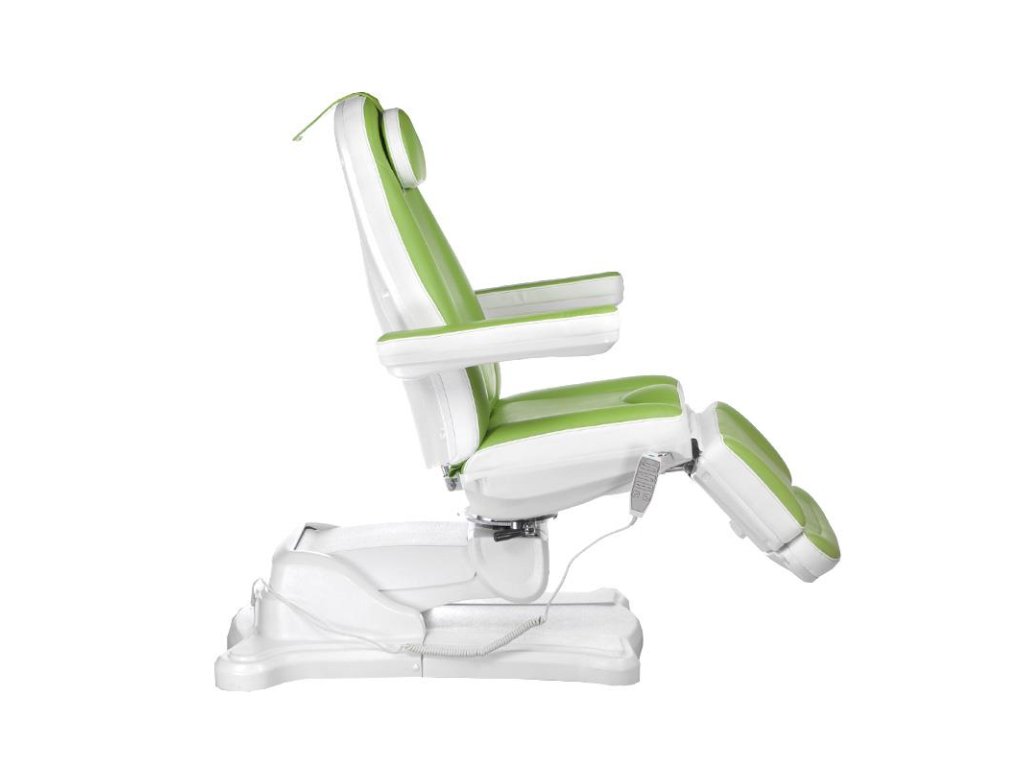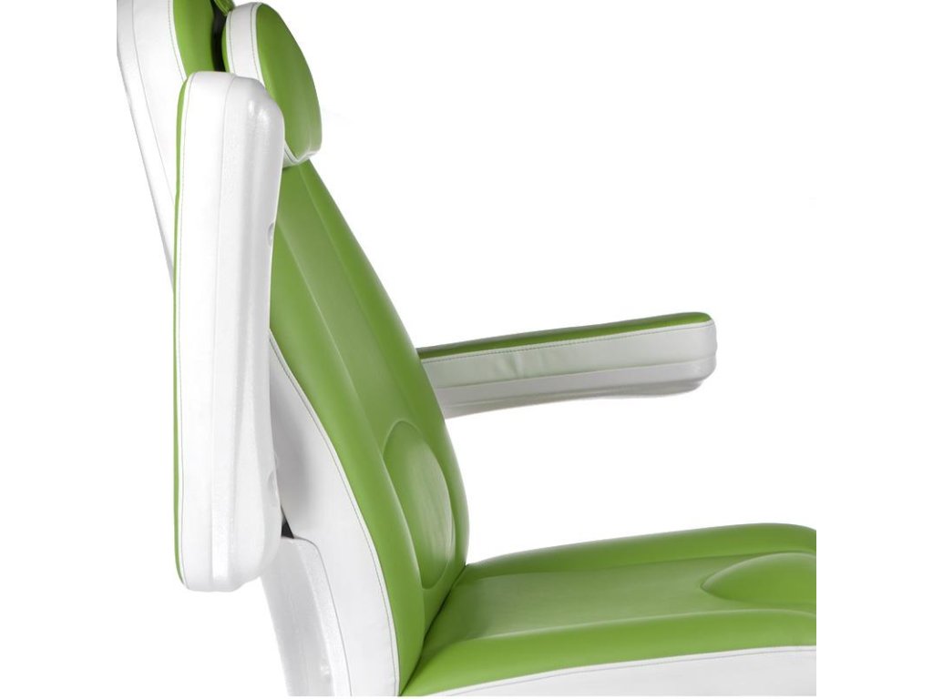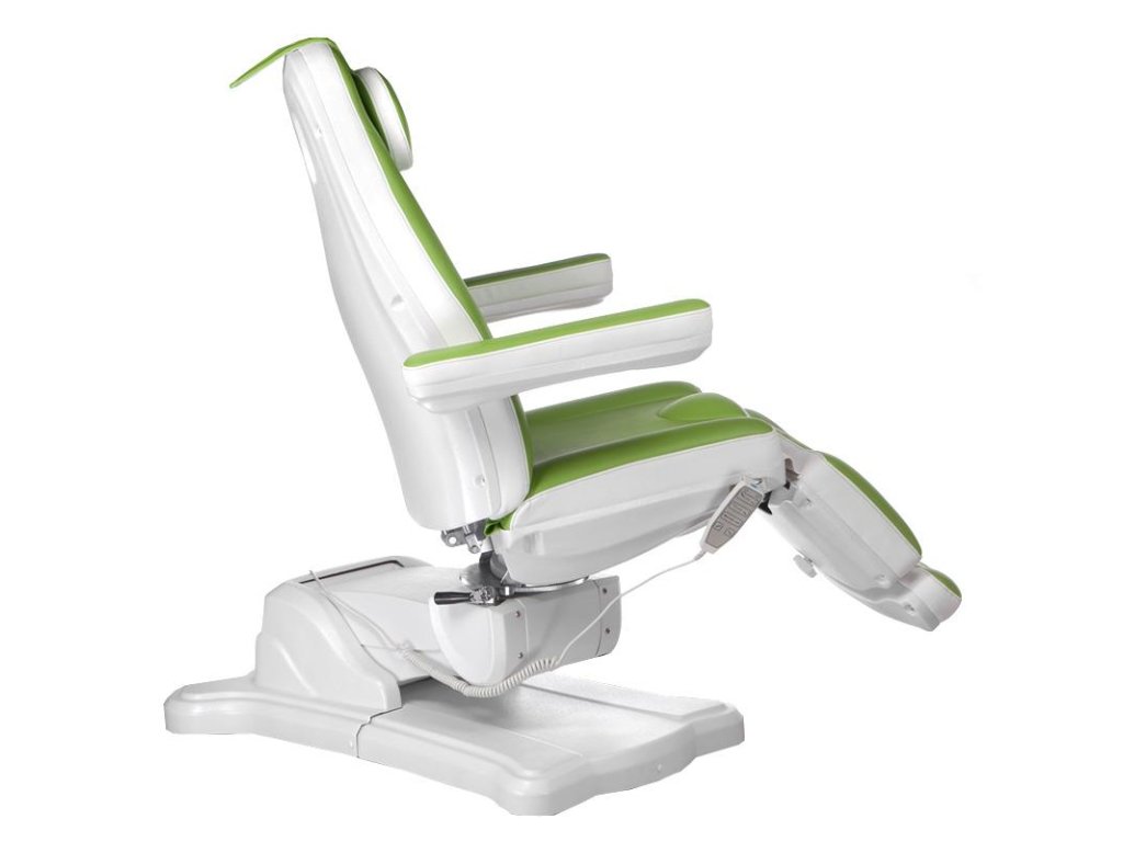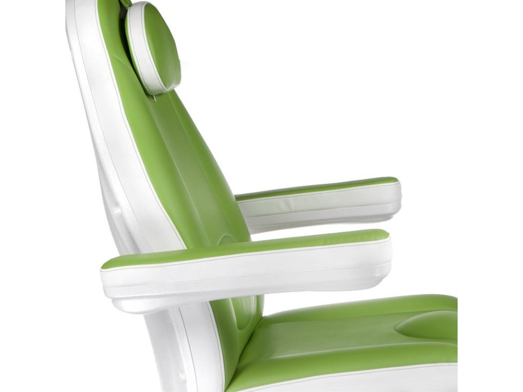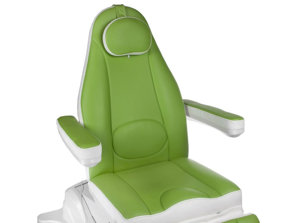A modern kivitelezésű, fehér színű Mazaro BR-6672 elektromos kozmetikai ágy alkalmas minden kozmetikai eljáráshoz, sminkeléshez és masszázs kezelésekhez. Elektromosan állítható a szék magassága és támlája, az ülés dőlésszöge (az ún. bölcső helyzetbe) és a lábtámla. A távirányító segítségével a kívánt helyzet beállítási lehetőségének köszönhetően a pozicionálás jelentősen leegyszerűsödik. A kozmetikai szék kartámlákkal is rendelkezik, amelyek szükség esetén könnyen eltávolíthatók. A fejtámlán található arclyuk kivágás lehetővé teszi a masszázskezeléseket is. A praktikus kozmetikai párna az arclyuk kivágás dugójaként is szolgál.