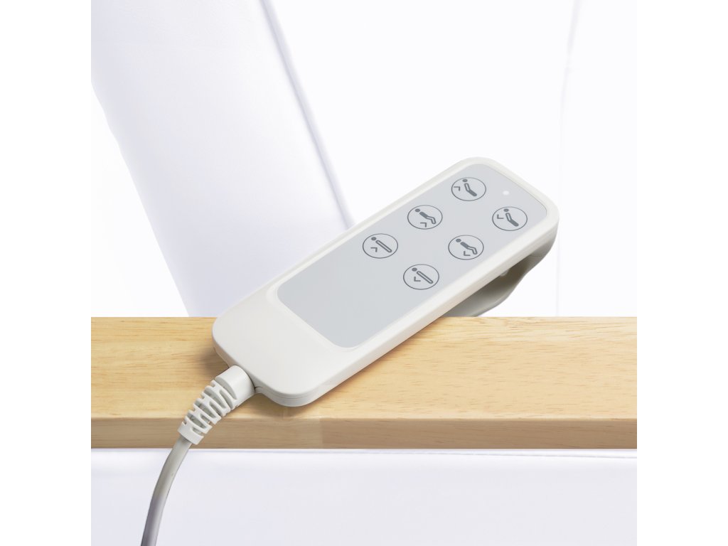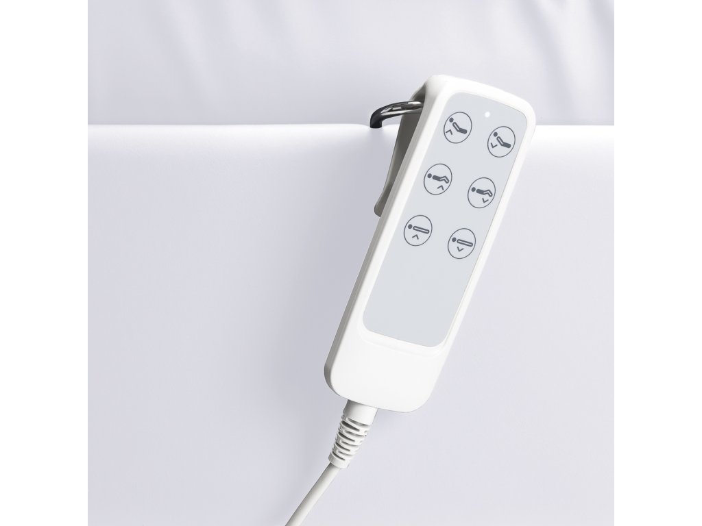 A három erős elektromos motor segítségével könnyedén és fokozatmentesen szabályozható a magasság, a háttámla és a lábtámasz dőlésszöge. Az intuitív vezetékes távirányító gyors beállítást tesz lehetővé, így az ágy minden kezeléshez és a vendég magasságához rugalmasan igazítható.