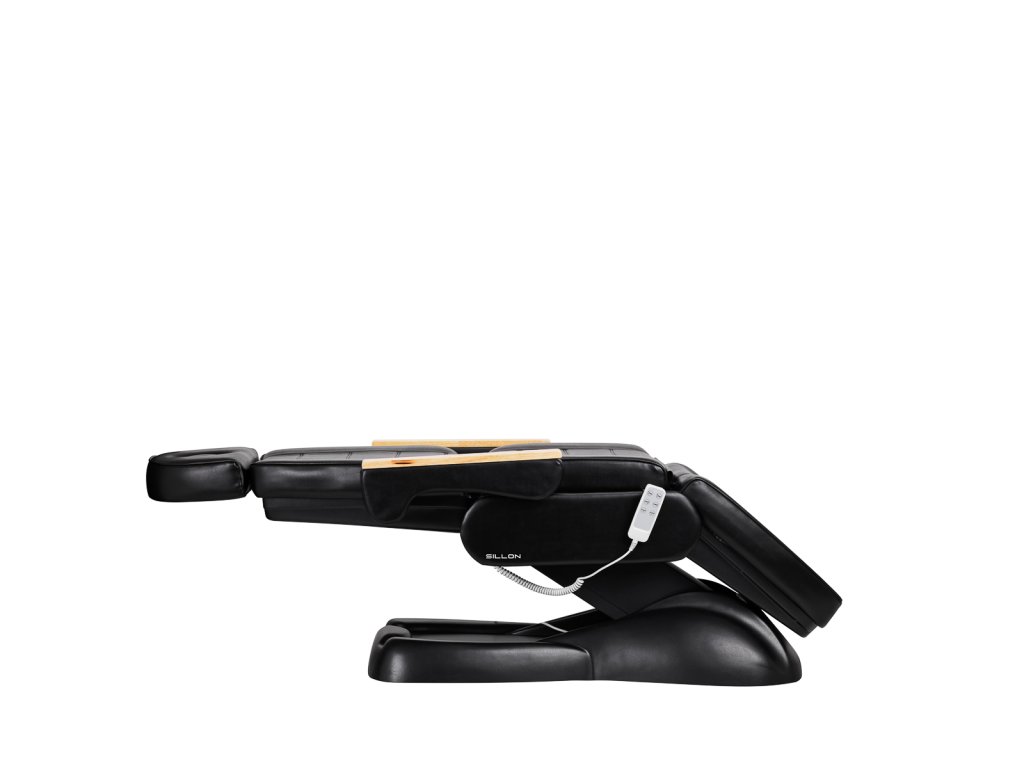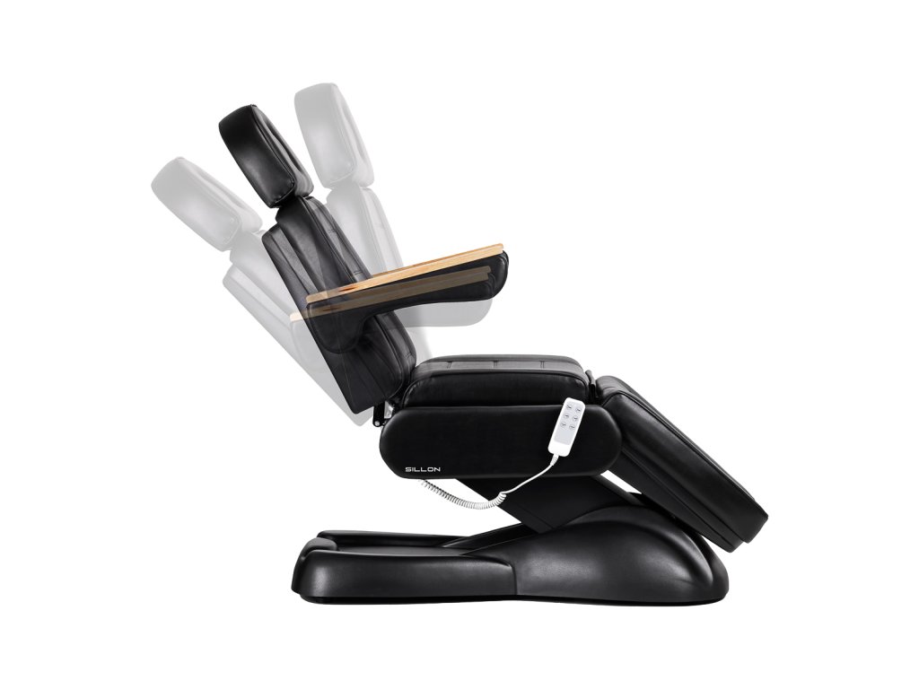 A készülék 3 motorral rendelkezik, amelyek lehetővé teszik az ülésmagasság, a háttámla és a lábtámasz precíz elektromos beállítását távirányítóval. A fa borítású manuálisan állítható kartámlák és a levehető fejtámla tovább növelik a kezelőágy sokoldalúságát. Az arclyuk kivágás és annak zárható dugója lehetővé teszi a kényelmes masszázskezeléseket is.
