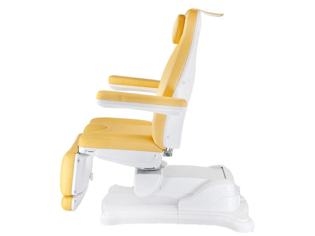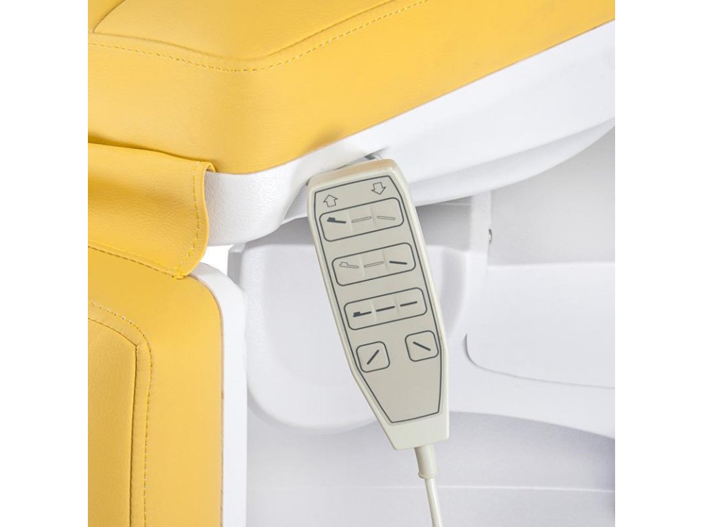 A modern kivitelezésű, fehér színű Mazaro BR-6672 elektromos kozmetikai kezelőágy alkalmas minden kozmetikai eljáráshoz, sminkeléshez és masszázs kezelésekhez. Elektromosan állítható a szék magassága és támlája, az ülés dőlésszöge (az ún. bölcső helyzetbe) és a lábtámla. A távirányító segítségével a kívánt helyzet beállítási lehetőségének köszönhetően a pozicionálás jelentősen leegyszerűsödik. A kozmetikai szék kartámlákkal is rendelkezik, amelyek szükség esetén könnyen eltávolíthatók. A fejtámlán található arclyuk kivágás lehetővé teszi a masszázskezeléseket is. A praktikus kozmetikai párna az arclyuk kivágás dugójaként is szolgál.