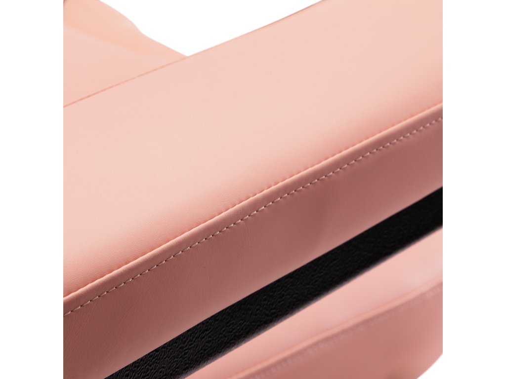 A szék rozsaszín szintetikus bőr kárpitozása kellemes tapintású, higiénikus, víz- és fertőtlenítőszer-álló, ezért könnyen tisztán tartható. A strapabíró alap maximális stabilitást garantál a kezelések alatt. A formázott élek és a fekete szín elegáns, professzionális megjelenést biztosítanak bármilyen szalonberendezés részeként.