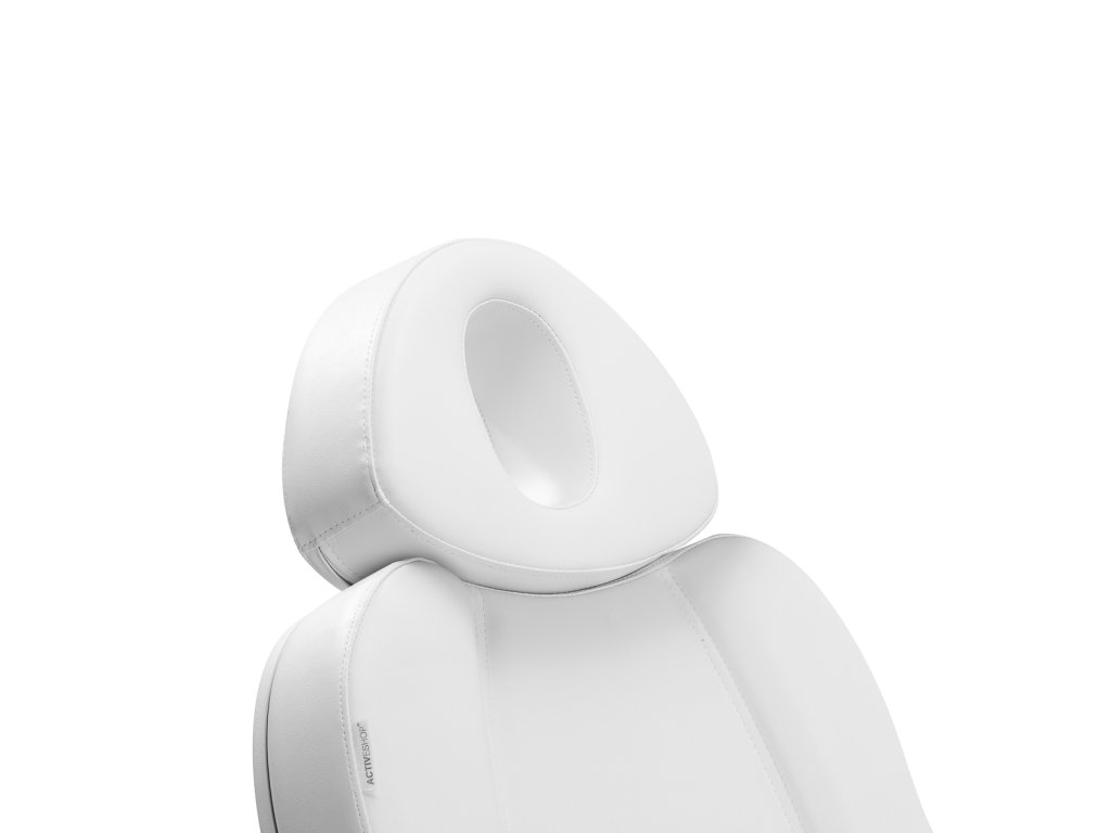 A kezelőszék kialakítása teljesen fekvő helyzetet is lehetővé tesz, így ideális különféle arc- és testkezelésekhez, sminkeléshez vagy masszázshoz. A fejtámla nyílása és a hozzá tartozó fedél és párna fokozza a kényelmet, különösen masszázskezelések során. A kartámaszok eltávolíthatók vagy elforgathatók, így a szakember bármely pozícióból könnyedén hozzáfér az ügyfélhez.
