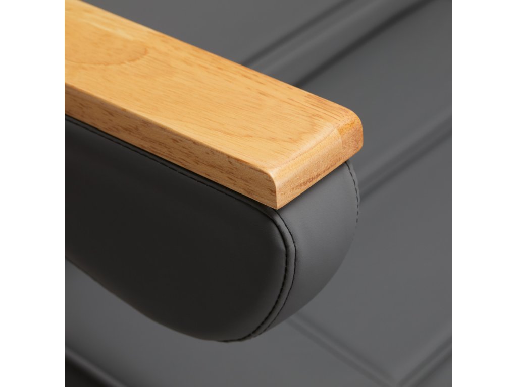 A szék huzata puha tapintású, strapabíró szürke műbőrből készült, amely vízálló, fertőtlenítőálló és könnyen tisztítható. A kiváló minőségű habszivacs párnázat biztosítja a kényelmet még hosszabb kezelések alatt is. A fehér színű, masszív talapzat garantálja a stabilitást, miközben a karfákon található elegáns faelemek különleges megjelenést kölcsönöznek a széknek.
