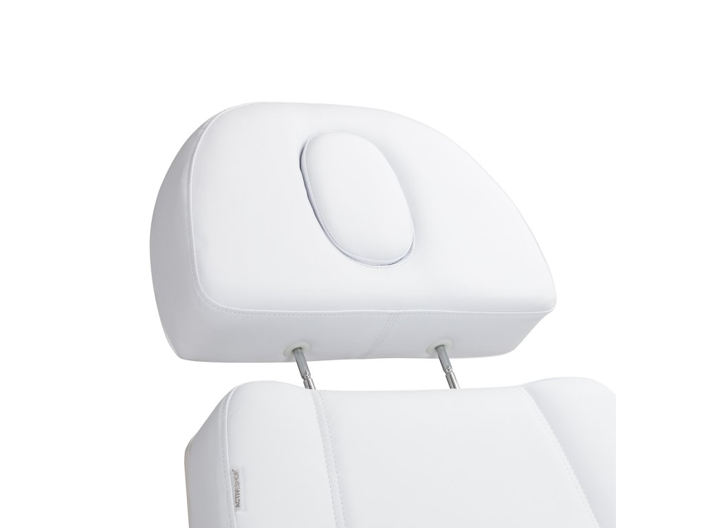 A 180°-ban forgatható, levehető kartámaszok lehetővé teszik a könnyű beülést, illetve a kezelőszemélyzet akadálytalan hozzáférését. A széles, kényelmes ülőfelület és az állítható fejtámla arcnyílással maximális kényelmet nyújt még a hosszabb kezelések során is. A fejtámla nyílása fedéllel van ellátva, így esztétikus és praktikus megoldást kínál masszázshoz vagy háthoz kapcsolódó kezelésekhez is.