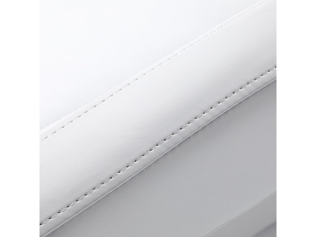 A szék puha, fehér szintetikus bőr kárpittal készült, amely kellemes tapintású, könnyen tisztítható és megfelel a modern higiéniai elvárásoknak. A stabil, precízen kialakított szerkezet lehetővé teszi a professzionális felhasználást, miközben esztétikailag is emeli a szalon megjelenését.