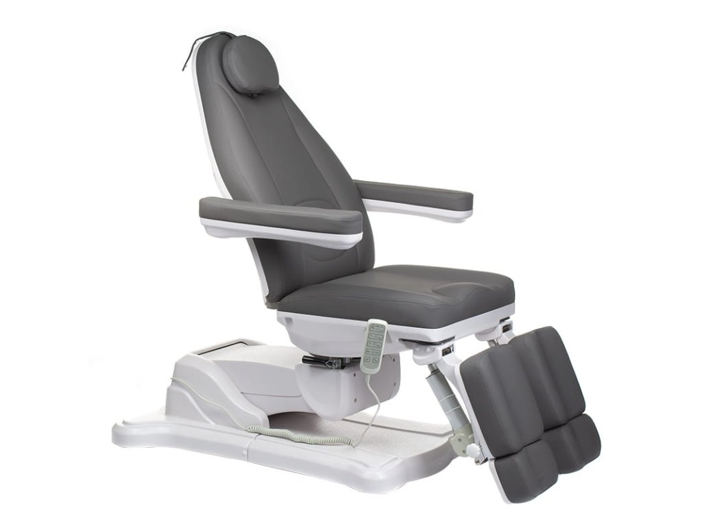 A kezelőágy 5 elektromos motorral rendelkezik, melyek segítségével távirányítóval állítható az ülésmagasság, a háttámla és a lábtámasz pozíciója, valamint a szék bölcsőpozíciója is. A manuálisan forgatható ülés 60°-ban mozgatható, így a kezelő könnyebben pozicionálhatja a vendéget. A két osztott lábtámla oldalirányban is dönthető, ami különösen előnyös pedikűrnél vagy egyedi kezeléseknél.
