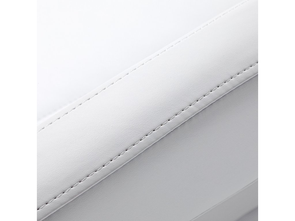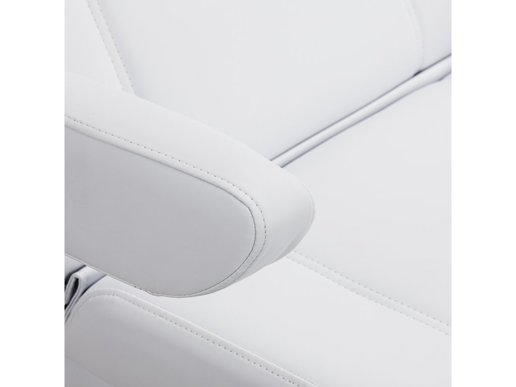 A közepes keménységű habszivacs és a magas minőségű, fehér szintetikus bőrkárpit garantálja a kényelmet, tartósságot és a professzionális megjelenést. A borítás nedvességálló, könnyen tisztítható, így ideális a mindennapos szalonhasználathoz. A szék masszív váza hosszú élettartamot és megbízhatóságot biztosít, még intenzív használat mellett is.