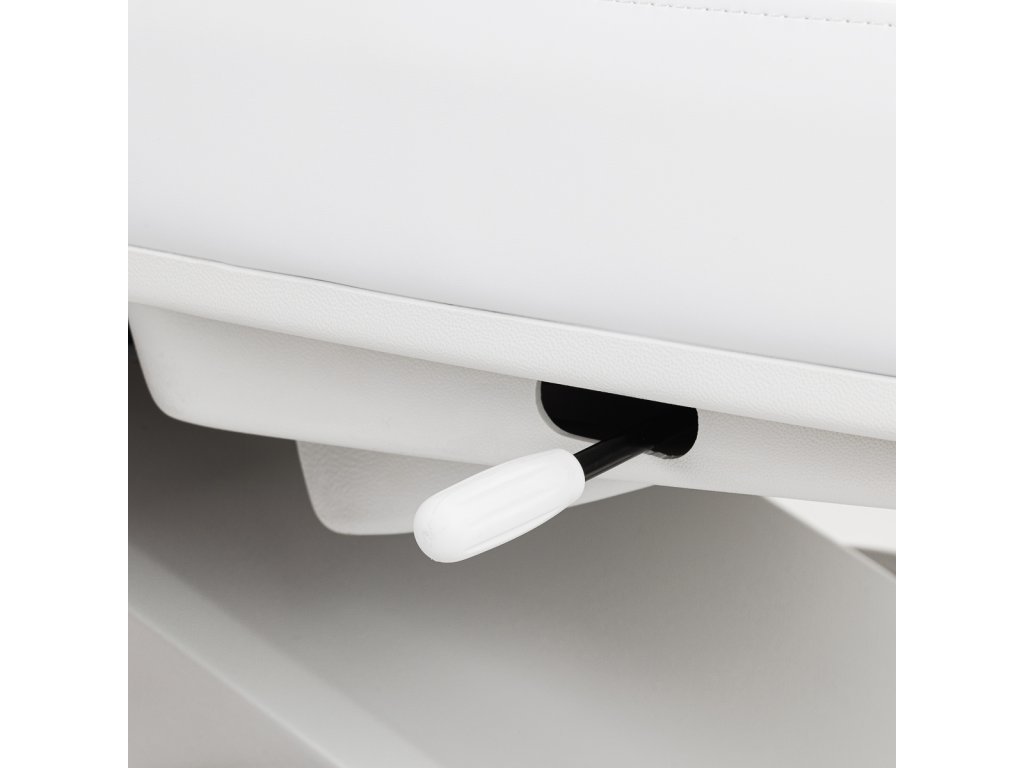 Az ülésmagasság 60 és 90 cm között állítható, a szék teljesen kinyújtott állapotban eléri a 200 cm hosszúságot, ezáltal kényelmes támaszt biztosít fekvő helyzetben végzett kezelésekhez is. A 180°-ban elforgatható és eltávolítható kartámaszok megkönnyítik az ügyfél be- és kiszállását, valamint zavartalan hozzáférést biztosítanak a kezelő számára. A fejtámla arcnyílással is rendelkezik, amely diszkréten rejtve van a párna alatt, ezáltal növeli a komfortérzetet.