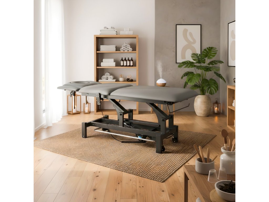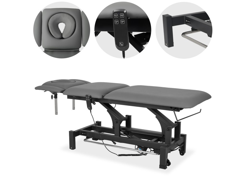 Az Axis5 Ergo elektromos terápiás ágy – szürke (k722) a professzionális masszázs-, fizioterápiás és rehabilitációs központok számára tervezett, modern és megbízható kezelőágy.