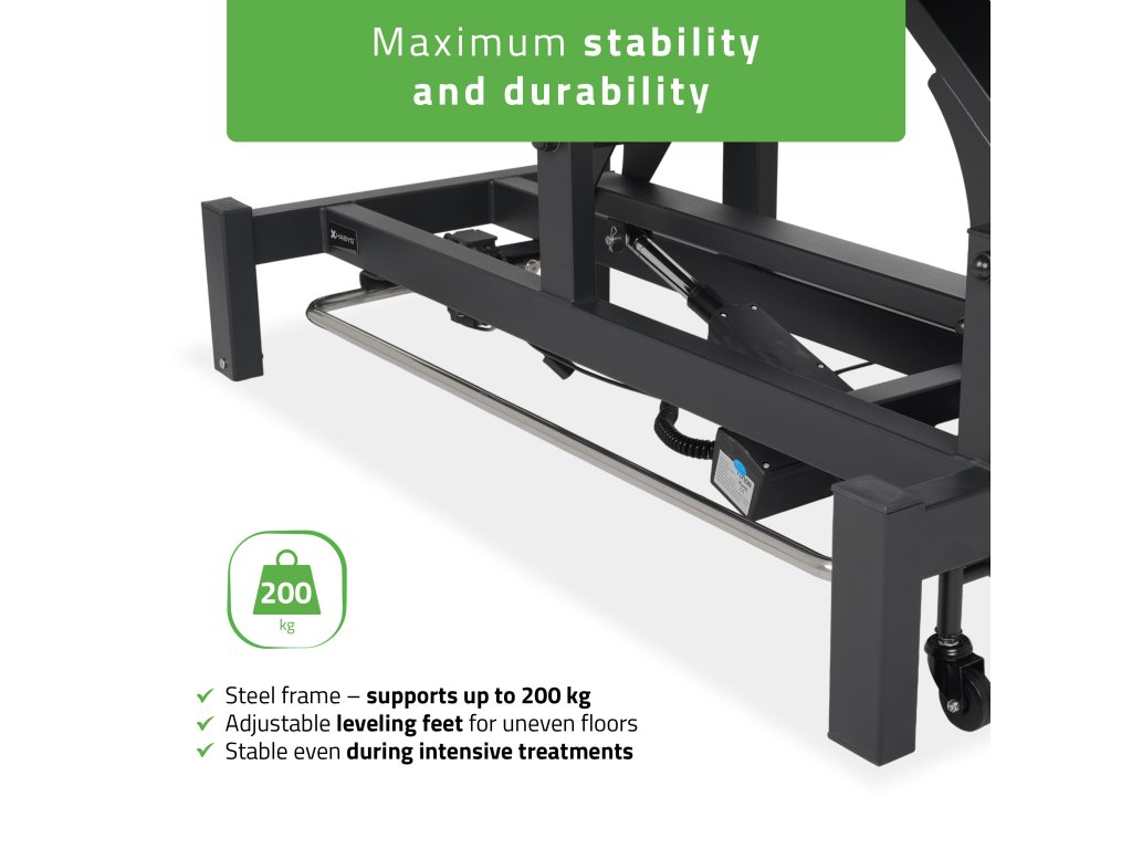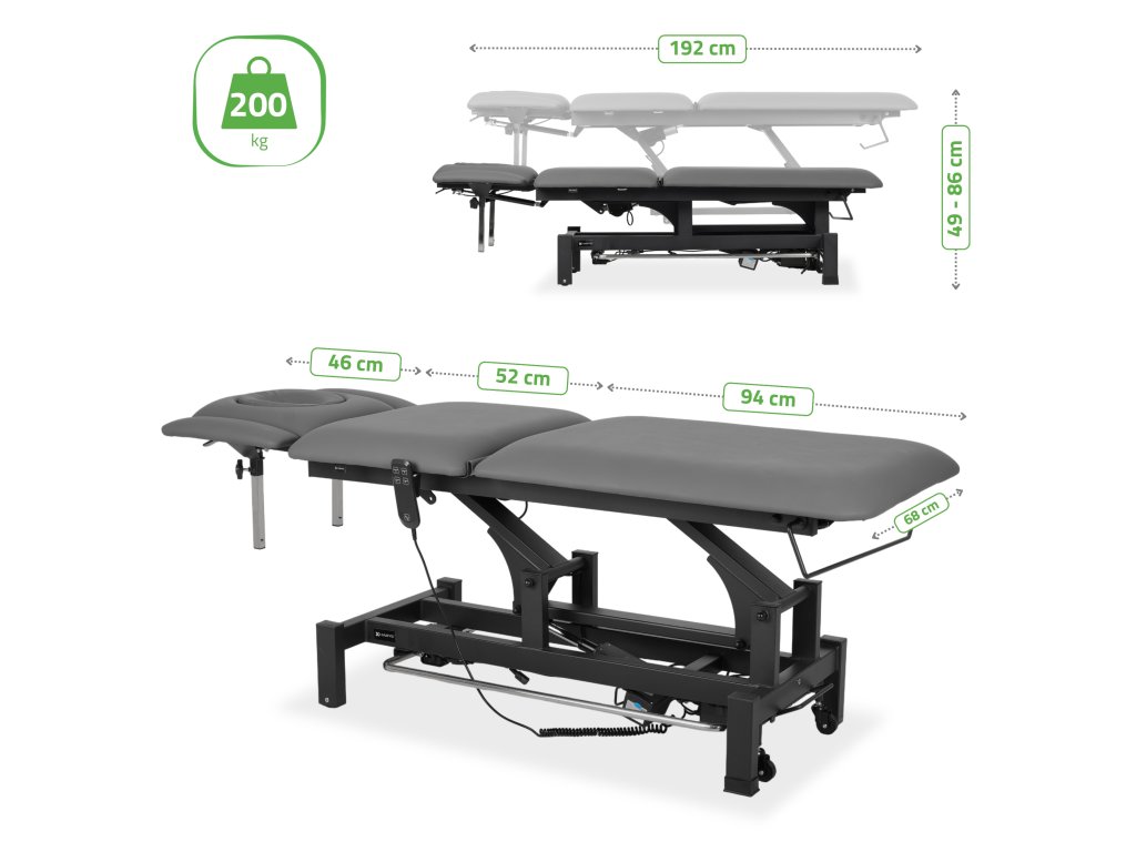 Kombinálja a csendes elektromos működést, a precíz beállíthatóságot és az ergonomikus kialakítást, hogy a lehető legnagyobb kényelmet nyújtsa mind a terapeutának, mind a páciensnek.
