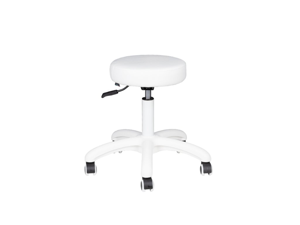 Ez a fehér forgózsámoly munkaszék egy praktikus és esztétikus bútordarab, amely elengedhetetlen kelléke bármely szépségszalonnak, masszázs- vagy orvosi rendelőnek. A krómozott, ötágú talpazat és a strapabíró, gumibevonatos kerekek garantálják a tartósságot, a könnyű mozgást és a kiemelkedő stabilitást.