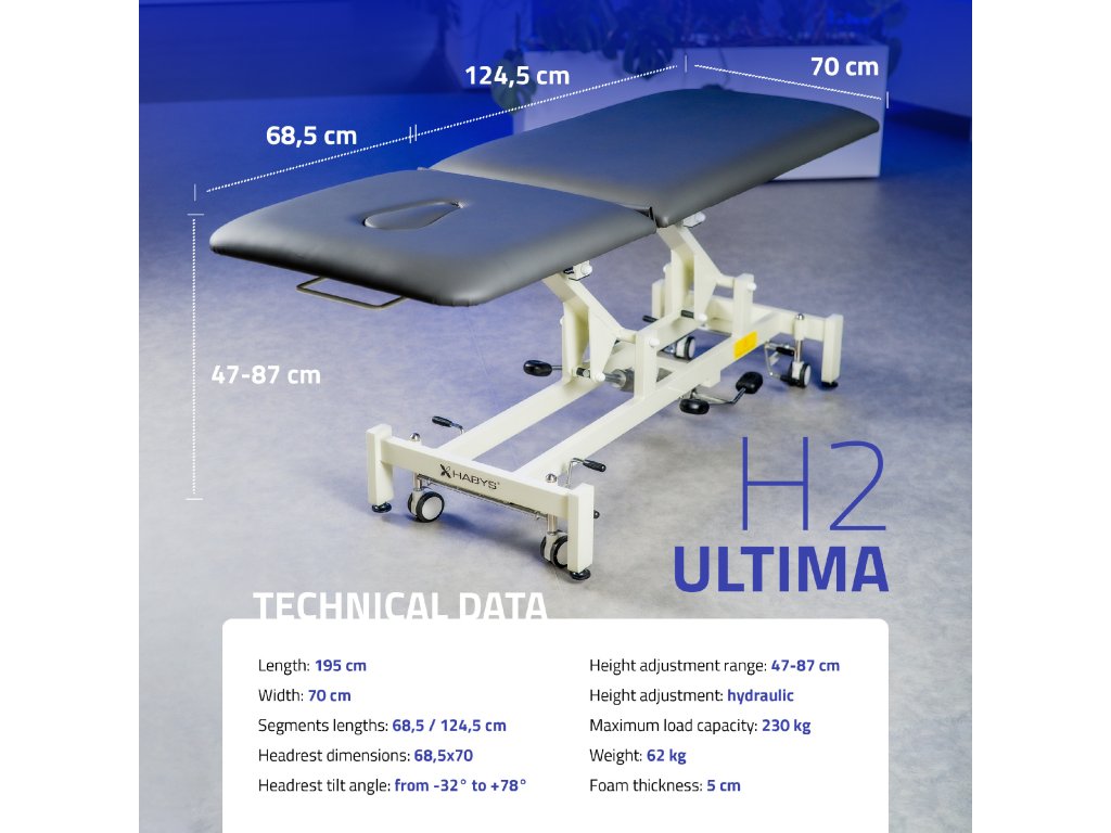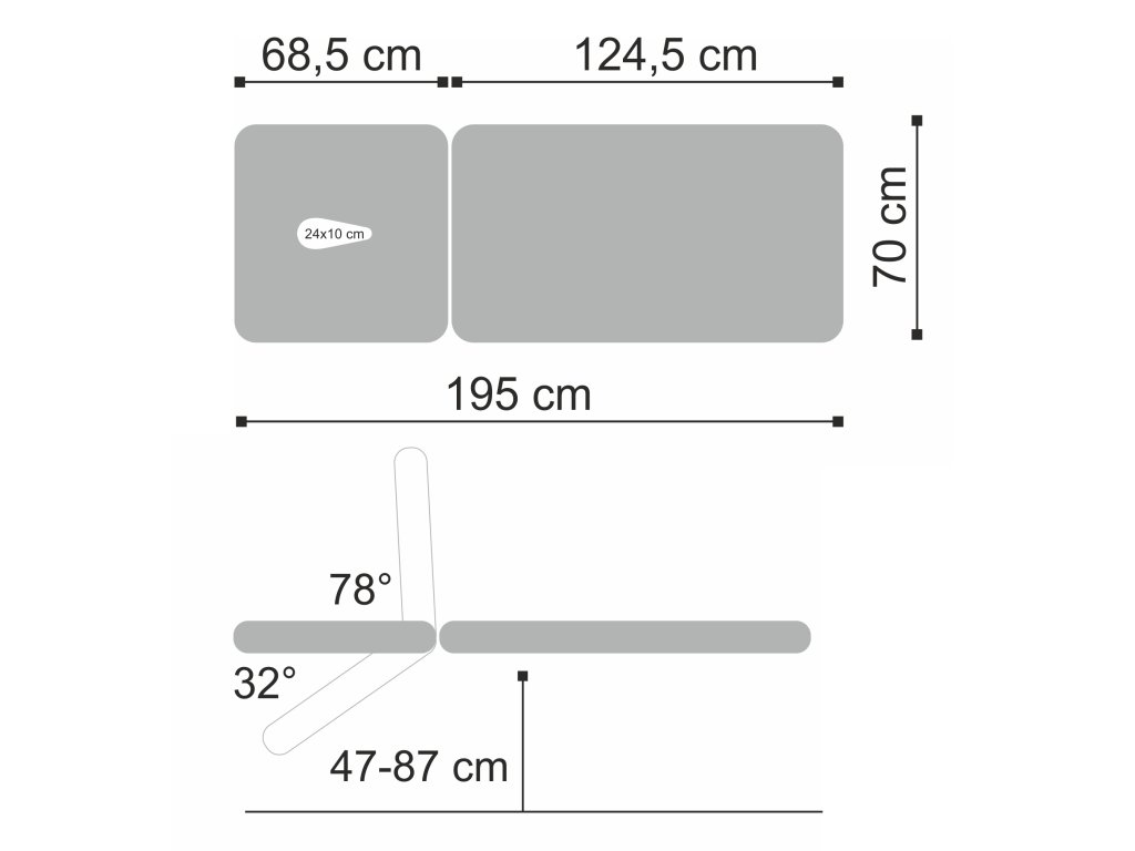 2 szekciós fekvőfelület: 193 × 70 cm méretben, ideális sokféle terápiás technikához