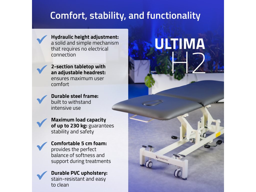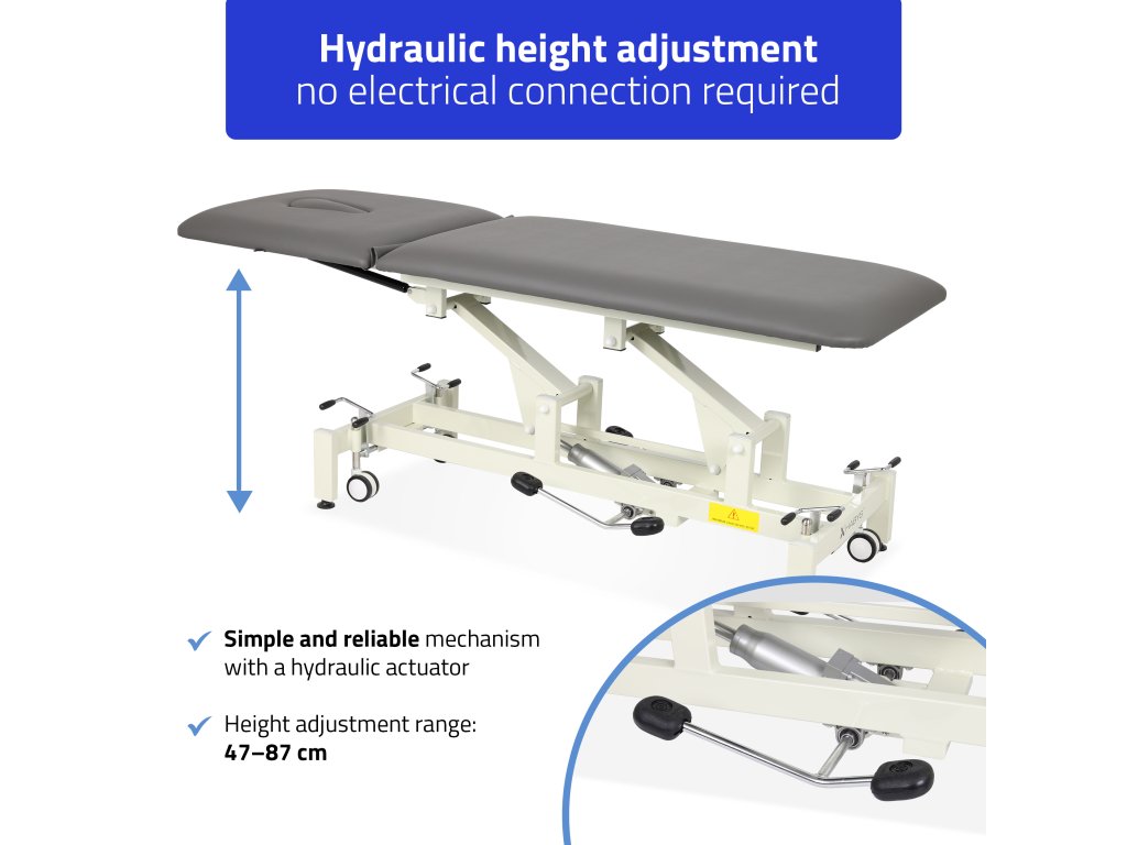 A Simply Core ideális választás azoknak a szakembereknek, akik megbízható, hosszú élettartamú és praktikus kezelőágyat keresnek mindennapos használatra – áram nélkül is működő hidraulikával a könnyű magasságállítás érdekében.