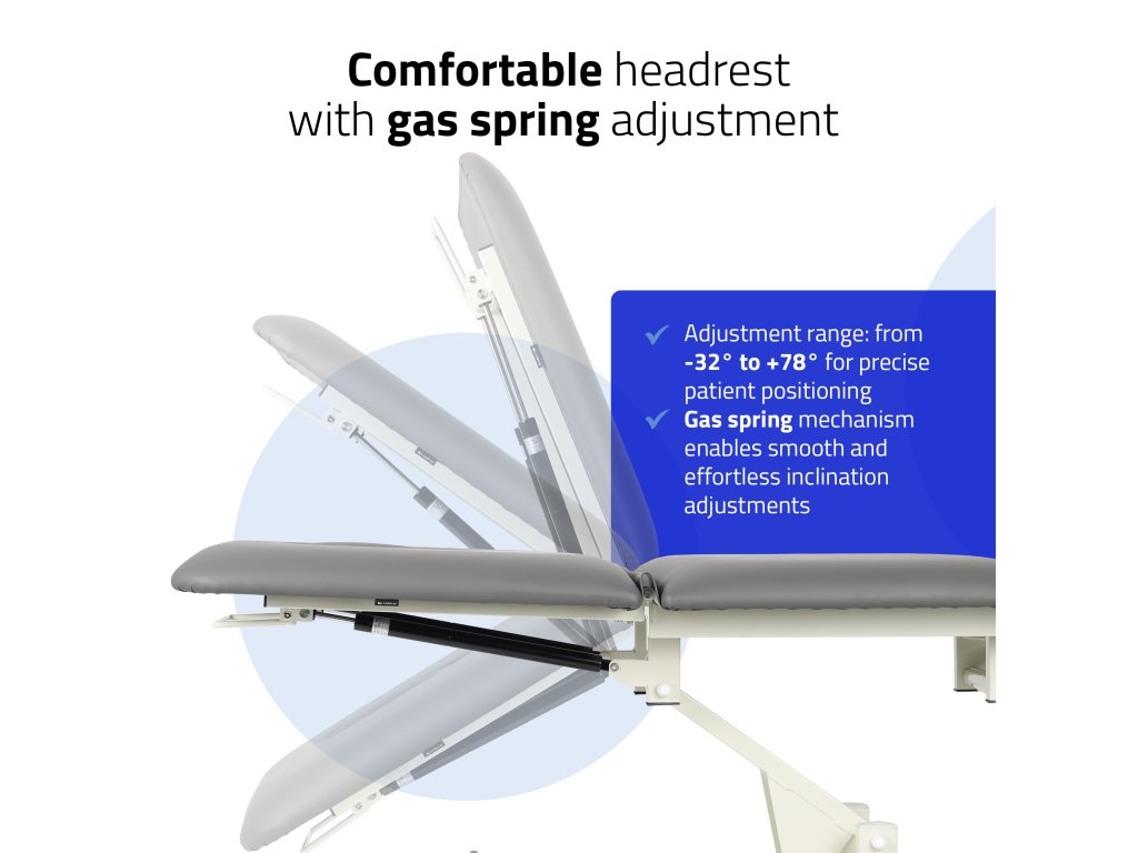 Állítható fejtámla gázrugóval: dőlésszög -32° és +78° között, precíz pozicionáláshoz