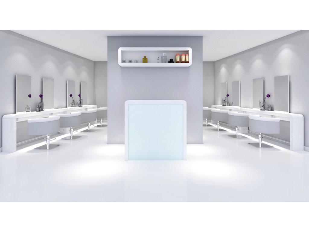 A szerkezet lakkozott MDF-ből készül, alapértelmezetten fehér vagy fekete színben. Igény esetén bármely RAL/NCS árnyalatban elérhető, így a fodrász fal tökéletesen illeszthető a szalon egyedi belső teréhez.