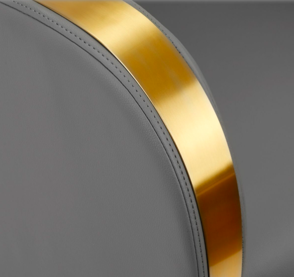 A szürke árnyalatú műbőr borítás tartós, ellenáll a deformációnak, és könnyen tisztítható. A tartós habszivaccsal töltött, jól profilozott ülőfelület és az elegáns, aranyszínűre lakkozott fém karfák biztosítják az optimális testtartást és kényelmet akár hosszabb kezelések során is. A Gabbiano Malaga fodrász fejmosó minden olyan tulajdonsággal rendelkezik, amelyre egy modern fodrászszalonban szükség van.