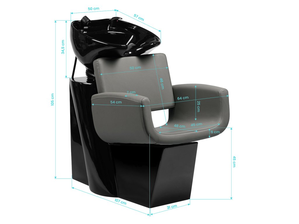 A mély, fekete kerámia mosdótál állítható dőlésszögű, így a fodrász könnyedén a vendég magasságához és a szolgáltatás típusához igazíthatja. A tál ellenáll a vegyszereknek, karcolásoknak és elszíneződésnek, sima felülete pedig megkönnyíti a tisztítást és biztosítja a hosszú élettartamot.