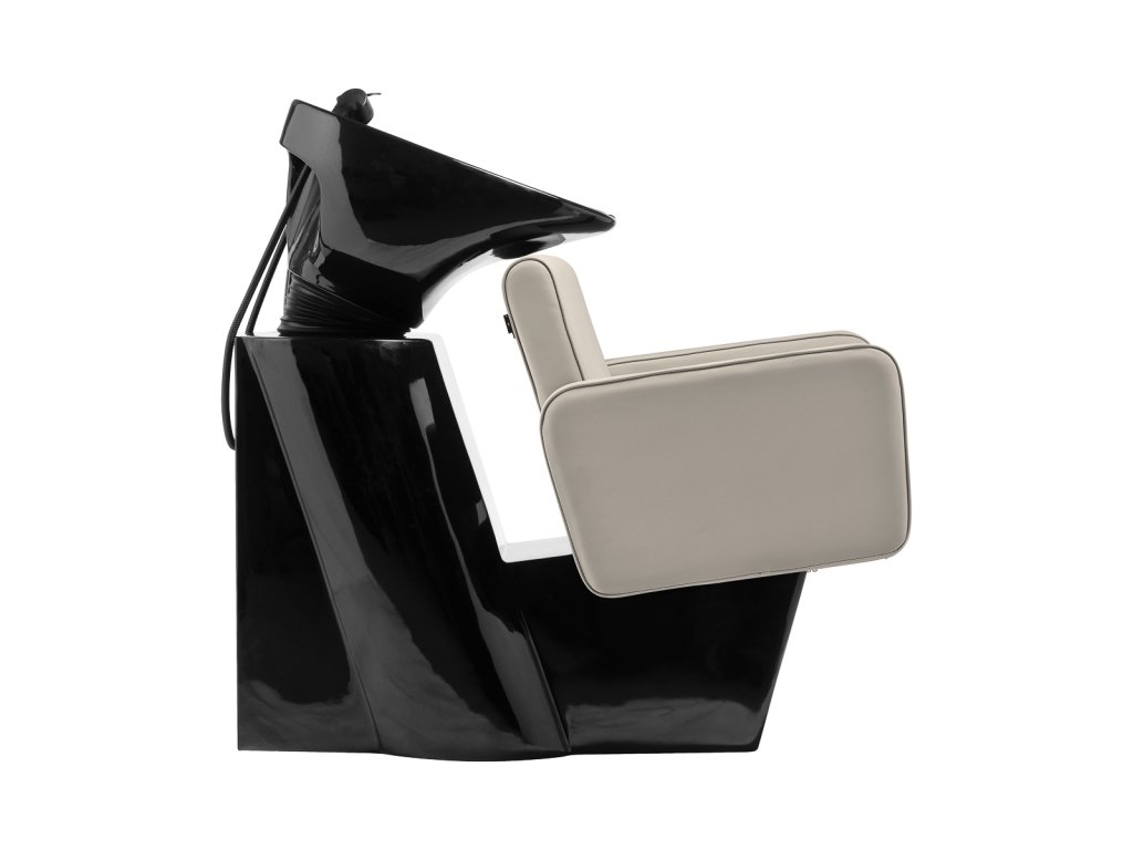 A mély, fekete kerámia mosdótál állítható dőlésszögű, ami lehetővé teszi, hogy a fodrász a vendég magasságához és a kezelés típusához igazítsa a pozíciót. A tál vegyszer-, karc- és elszíneződés-álló, sima felülete pedig megkönnyíti a tisztítást és higiénikus munkavégzést biztosít.