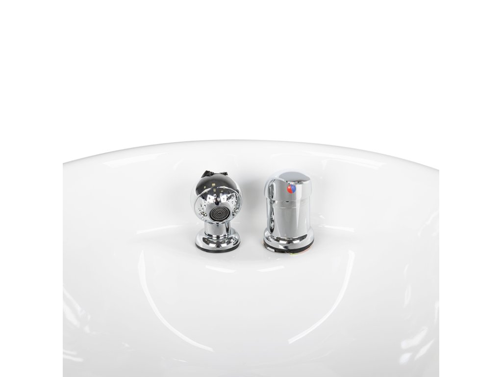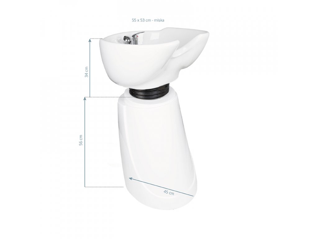 Különösen ajánlott kis fodrászszalonok számára, ahol fontos a hely ügyes kihasználása. A tökéletesen formázott kerámia tál lehetővé teszi, hogy az ügyfél kényelmesen lefektesse a fejét, és élvezze a fodrászat egyik legkellemesebb kezelését. Az oszlop, amelyre a tál van helyezve, akrilból készült. A mosóállvány rögzítése a padlóhoz. Egyszerűség és elegancia egyben. A mosóállvány gyönyörűen mutat a fodrászszalonokban.