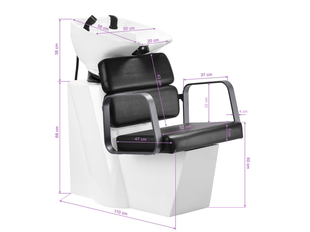 Ez a fodrász fejmosó nemcsak praktikus, hanem dizájn szempontjából is prémium kategóriás választás. A fekete és fehér kombináció modern, stílusos és luxus megjelenést kölcsönöz, amely minden professzionális szalonhoz illik.