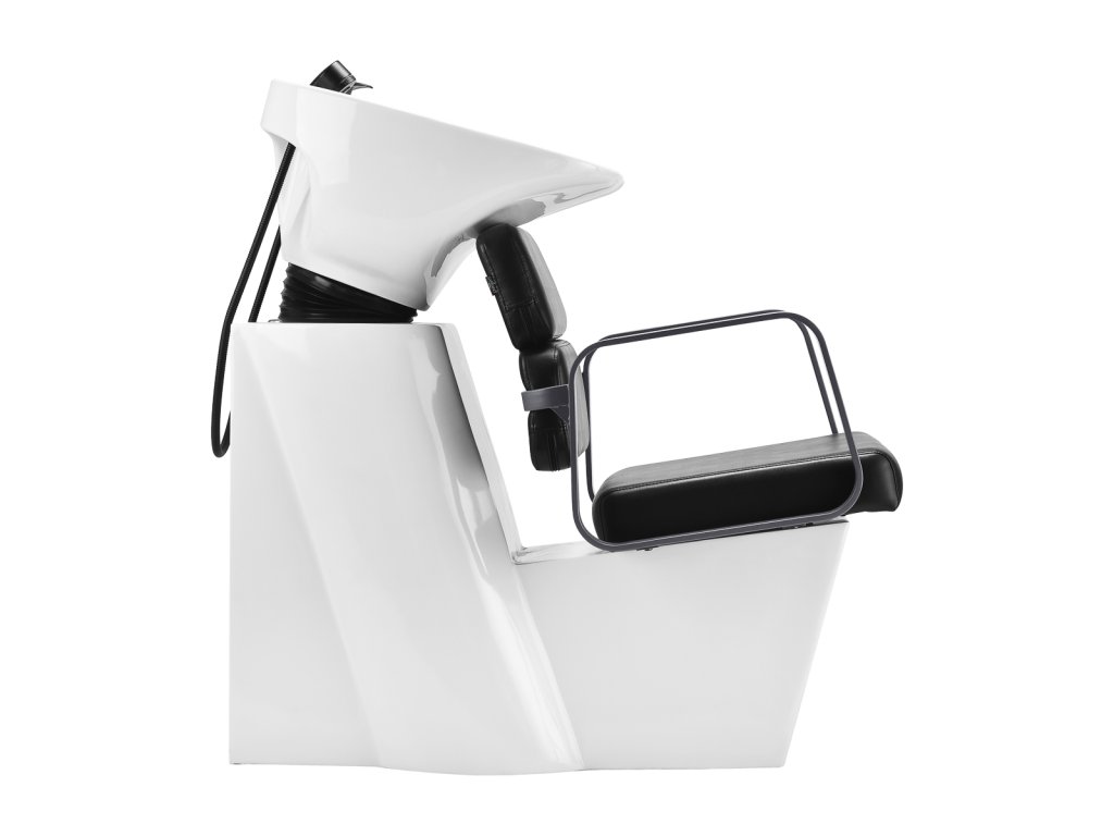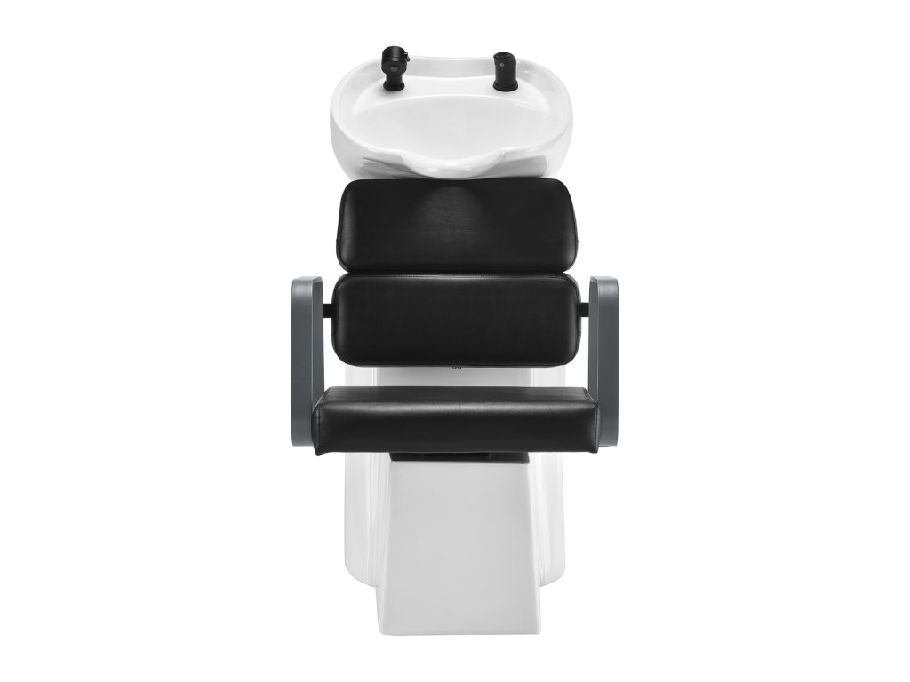 A fő hangsúlyt a fehér kerámia mosdótál kapja, amely ellenáll a karcolásoknak, szennyeződéseknek és a nagy terhelésnek. Állítható dőlésszöge lehetővé teszi a személyre szabott használatot, mind a vendégek, mind a fodrászok számára. A puha fekete nyaktámasz megszünteti a kerámia hideg érzetét, és maximális kényelmet biztosít.