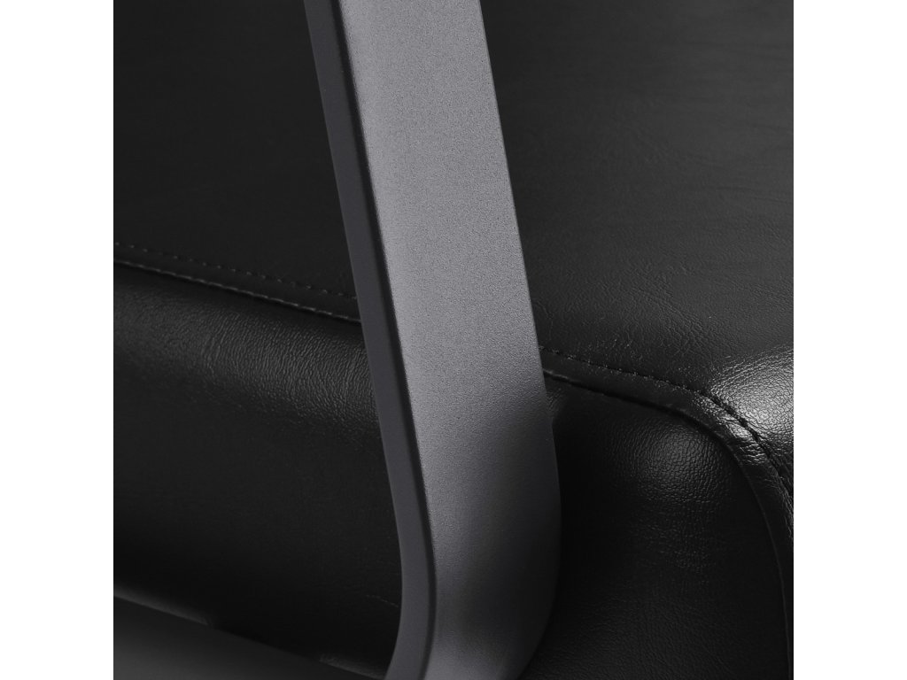 Az ülőrész fekete szintetikus bőr kárpitozással készül, amely elegáns, vízálló, könnyen tisztítható és rendkívül tartós. A minőségi szivacstöltet hosszú élettartamot és kényelmet garantál még hosszabb kezelések során is. A szürke árnyalatú fém kartámaszok ergonomikus tartást nyújtanak, miközben kiemelik a modern stílust.