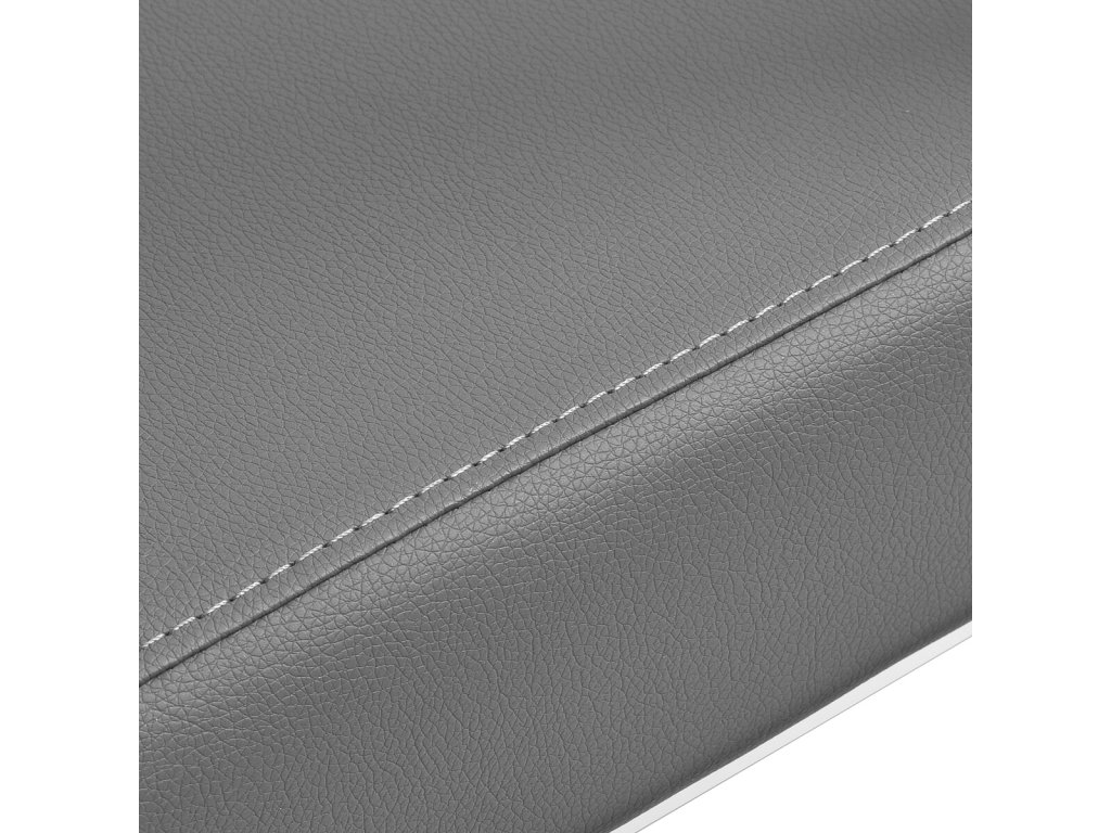 A szürke kárpitozás tartós műbőrből készült, kellemes tapintású, könnyen tisztítható és ellenáll a kopásnak. A stabil habbetét hosszú távon megtartja formáját és kényelmet biztosít a hosszabb ülések során. A fehér fém karfák megfelelő alátámasztást nyújtanak a vállaknak, növelve a kliens komfortérzetét.